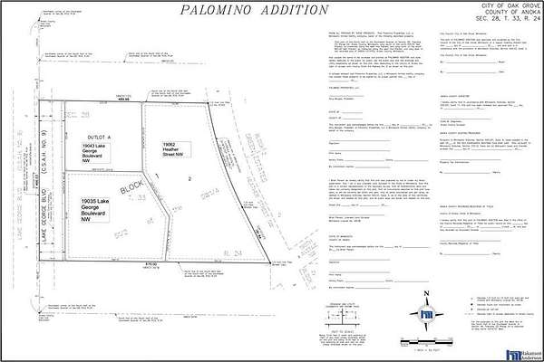 Hwy 65 to Viking Blvd. Head West to Lake George Blvd. Head South about a block to 191st Ave NW. Head East to your first right which is Heather St NW. Head south. Lot is on the right.