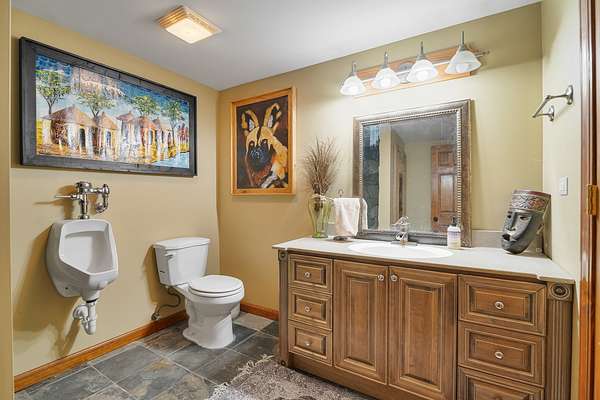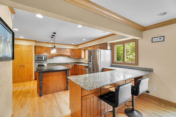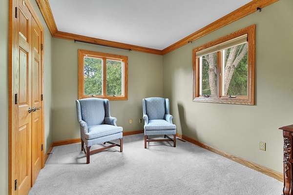 Tucked away on 4.3 acres of wooded privacy, this custom 4-bedroom, 3.5-bath home is a true retreat designed for everyday comfort and unforgettable entertaining. From the moment you step inside, you'll feel the warmth of hardwood floors, crown molding, and rich millwork. The chef's kitchen is a showpiece-granite counters as far as the eye can see, a massive center island, endless cabinets, a pantry, stainless steel appliances, a built-in oven and microwave, and even a copper-hood cooktop. Off the kitchen, the breakfast area flows effortlessly into the great room with a see-through fireplace and the sunroom wrapped in windows, where nature steals the show. Upstairs, the primary suite feels like a getaway with a sitting room, cedar walk-in closet, and spa bath with double sinks and a custom-tiled shower. Three more oversized bedrooms-each with cedar closets-share a beautifully updated full bath. But the real surprise is the Northwoods-inspired lower level. Picture a massive 39x28 rec room with a stone fireplace, copper drop ceiling, and full wet bar that practically begs for gatherings. Add in a full bath and a staircase straight out to the pool, and this space becomes a year-round destination. Step outside and it only gets better-your own resort-style oasis with a sprawling paver patio, a 20x40 in-ground pool, a hot tub and a shaded second patio overlooking acres of peaceful countryside. And here's the most unforgettable feature-your very own chicken house with chickens and ducks, plus two baby goats with their own little home. The best part? They can stay with the property if you'd like! A circular drive, 2-car garage, storage shed, and direct access to Boger Bog Conservation District trails complete the package. And yes-horses are welcome! This isn't just a home. It's a lifestyle-peaceful, private, and perfect for creating memories.