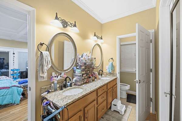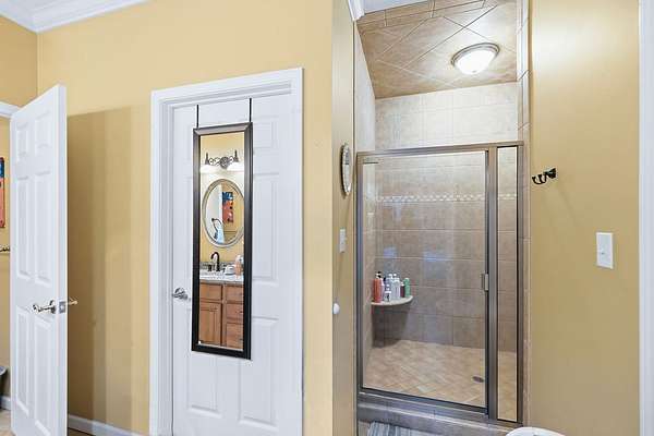 - Bath In Primary Bedroom, Cathedral Ceilings, Ceiling Fans, Dual Sinks, Loft, Main Level Primary, Shower Only, Smooth Ceilings, Walk In Closets, Walk In Shower, Window Treatments