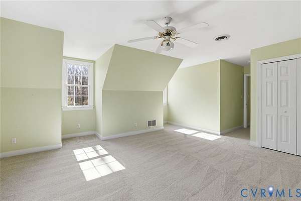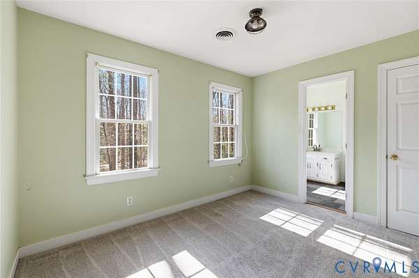 Experience the perfect blend of rural privacy and modern convenience in this exceptional 4-bedroom, 2.5-bath colonial, nestled on a sprawling 3+ acre lot in coveted Powhatan County. Sun-drenched and inviting, this home seamlessly pairs timeless country charm with a versatile floor plan designed to accommodate any style. The interior shines with sparkling authentic hardwood floors and brand-new carpeting throughout. The first-floor primary suite offers ultimate convenience, featuring a private en-suite and an expansive walk-in closet. The main level is rounded out by a spacious eat-in kitchen, a formal dining room, an open-concept flex space, and a living room with dramatic vaulted ceilings. Upstairs, the landing area provides a perfect sunlit nook for reading or relaxing, accompanied by three generous bedrooms, a full bath, and a walk-up attic offering abundant storage. The outdoor living spaces are truly a highlight. Enjoy the three-season screened porch that spans nearly the entire rear of the home, or step out onto the adjacent patio to take in the views of the mixed wood acreage. With over three acres, two of which are fully fenced, the property offers endless potential for cultivating vibrant gardens, enjoying creekside walks, creating expansive pet play areas, or even launching a small-scale homestead! The property also includes a detached two-car garage equipped with built-in shelving for optimal organization. This home, and land, really do present an exceptional opportunity to master-plan your dream country retreat. Though you'll feel worlds away from the hustle and bustle, you are just minutes from SR-288, providing quick access to the area's premier shopping, dining, and amenities. Come and tour this tranquil sanctuary today!
