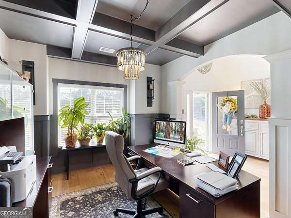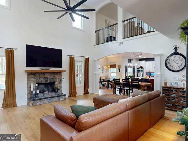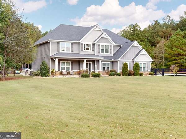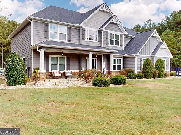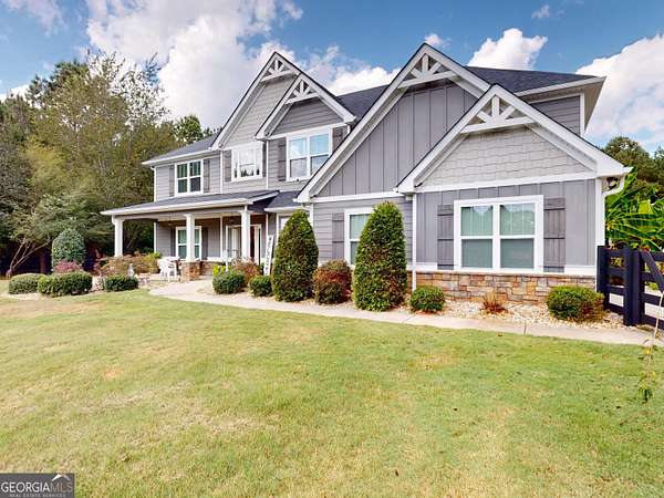 Welcome to this Stunning two-story Craftsman-style home nestled on 5 peaceful acres, offering the perfect blend of timeless design and modern comfort. With 5 spacious bedrooms, 3.5 bathrooms, and thoughtful upgrades throughout, this property is ideal for both everyday living and entertaining. Inside, you will find an inviting layout that flows beautifully from room to room. The main floor features a large family room with a fireplace that is open to the gourmet kitchen with marble counter tops and stainless-steel appliances, formal dining room, and a serene master suite with a spa-inspired ensuite bath. Stunning Hardwood floors span both levels of the home, adding warmth and elegance throughout. Upstairs, there are four additional bedrooms and two full bathrooms, loft that offers space and privacy for family and guests. Step outside to enjoy your gorgeous private backyard, featuring and in-ground swimming pool, lush landscaping, and a serene atmosphere for entertaining and relaxing. Gorgeous stone firepit. Front and back yard fenced in. The 5-acre lot provides plenty of room to garden, chicken pens, or to just simply enjoy the outdoors. For the hobbyists or those in need of extra storage, the property includes a 42x42 pole barn with electricity and attached workshop. Perfect for RV's, tools or doing home projects. Located in a peaceful, rural setting yet conveniently close to downtown Senoia. This home has it all - space, style and the kind of outdoor living most only dream of. Call today to schedule your private showing.