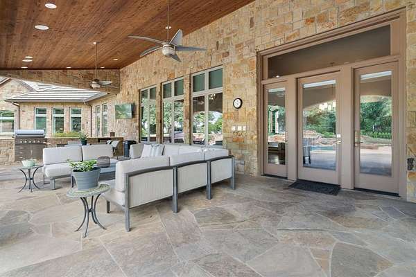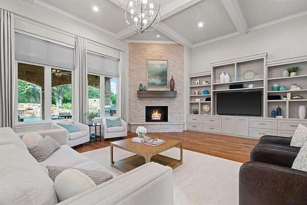 Settled on 2 acres in the heart of Flower Mound, this 10,400 sqft custom built masterpiece offers an unparalleled living experience in the exclusive gated community of Chateau du Lac. Completed in 2015, the home blends timeless architecture with modern luxury. With 7 bedrms, 7 full bathrms, 2 half baths, and a 6 car garage, this estate is thoughtfully designed for both grand-scale entertaining and everyday living. Step through the grand entry into a world of refined elegance, soaring ceilings, rich millwork, designer lighting, and floor to ceiling windows that flood the home with natural light. The chef's kitchen is equipped with top tier Wolf and Sub Zero commercial grade appliances, a spacious butler's pantry, and seamless flow into the casual dining and living areas. An impressive two story executive office and library is showcased off a light filled entry sets the tone for the home's sophistication. The opulent primary suite features a spa worthy bath and custom his and hers boutique style closets. Upstairs, each guest suite includes a private ensuite bath, along with a media room and game room designed for elevated entertaining. A third story bonus crows nest provides views of Lake Grapevine. A fully equipped guest house offers additional space and privacy with two bedrooms, two bathrooms, a living room, kitchen, private patio, and garage access, ideal for long term guests or multigenerational living. Outdoors, enjoy a true entertainer's paradise with expansive living spaces, a full summer kitchen, custom pool and spa connected by a stone spa spillway, private stone fire pit, and lush landscaping. Extensive trees provide plenty of shade in the heat of the day. The covered front porch is known for a nice breeze in the morning to enjoy coffee. Every detail has been thoughtfully curated for luxury, comfort, & privacy, all just minutes from DFW Airport, premier shopping, and top rated schools.