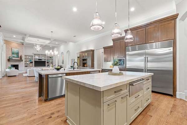 - Built-In Refrigerator, Dishwasher, Double Oven, Garbage Disposer, Gas Range, Ice Maker, Microwave, Range, Refrigerator, Warming Drawer, Washer