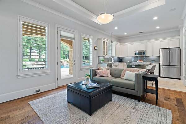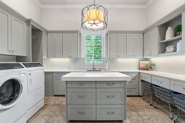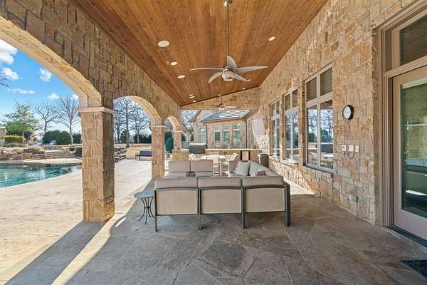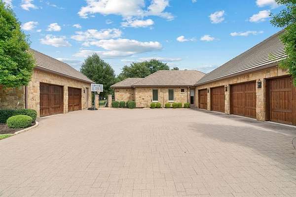 Privacy is everything in this exclusive 2-acre property located in the luxurious Château du Lac estates. This 9,400 sqft custom-built masterpiece offers an unparalleled living experience on the North shore of Lake Grapevine. Completed in 2015, the home blends timeless architecture with modern luxury. With 5 bedrms, 5 full bathrms, 2 half baths, and a 6-car garage, this estate is thoughtfully designed for both grand-scale entertaining and everyday living. Step through the grand entry into a world of refined elegance, soaring ceilings, rich millwork, designer lighting, and floor-to-ceiling windows that flood the home with natural light. The chef’s kitchen is equipped with top-tier Wolf and Sub-Zero commercial-grade appliances, a spacious butler’s pantry, and seamless flow into the dining and living areas. An impressive two-story executive office and library is showcased off a light-filled entry, which sets the tone for the home’s sophistication. The opulent primary suite features a spa-worthy bath and custom his and hers boutique-style closets. Upstairs, each guest suite includes a private ensuite bath, along with a media room & game room designed for elevated entertaining. A third-story bonus crow's nest provides views of Lake Grapevine. A fully equipped private guest house offers an additional 1,070 sqft with full kichen, two bedrooms, two full bathrooms, a living room, private patio with lush backyard views, & garage access, ideal for long term guests or multigenerational living. Outdoors, enjoy a true entertainer’s paradise with expansive living spaces, a full summer kitchen, custom pool & spa connected by a stone spa spillway, private stone fire pit, & lush landscaping. Extensive trees provide plenty of shade in the heat of the day. The covered front porch is known for a nice breeze in the morning to enjoy coffee. Every detail has been thoughtfully curated for luxury, comfort, & privacy, all just minutes from DFW Airport, Twin Coves Marina, & top rated schools.