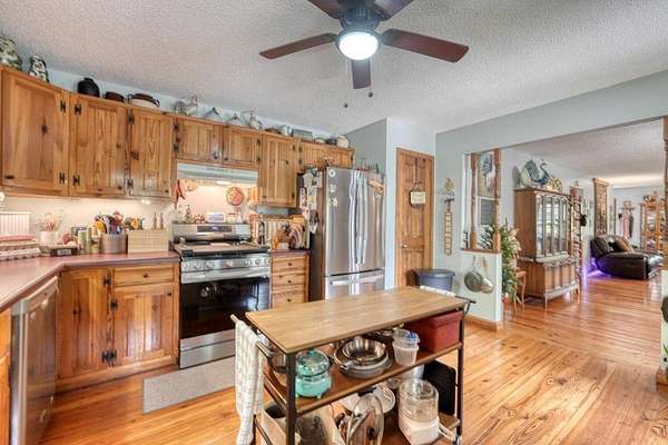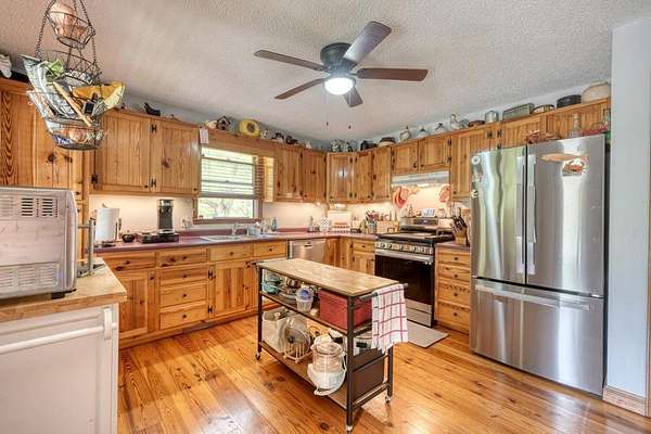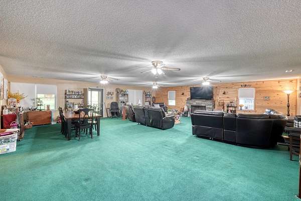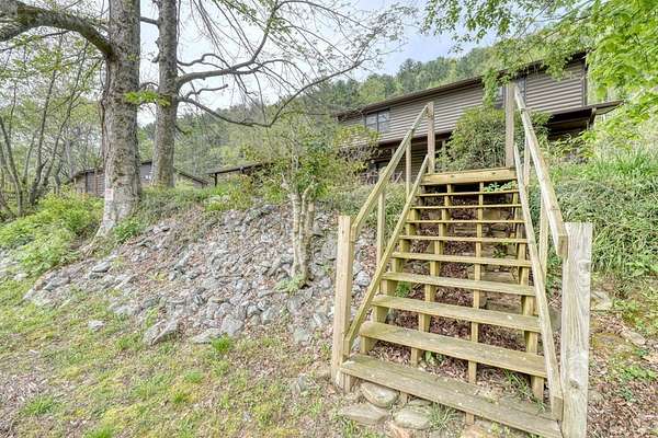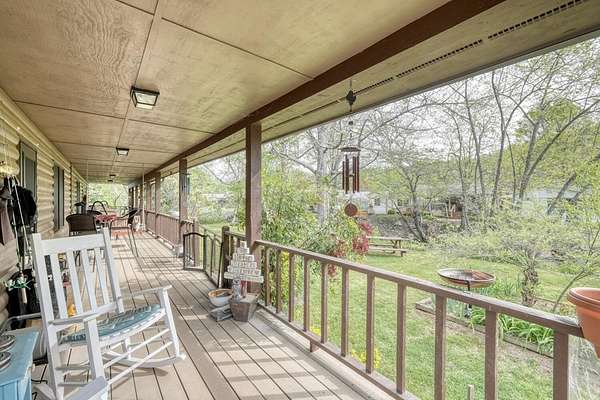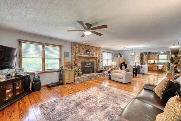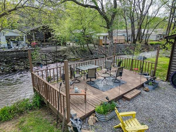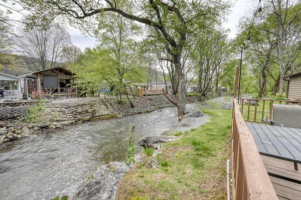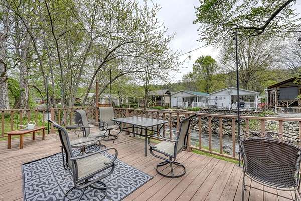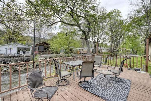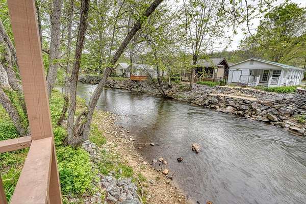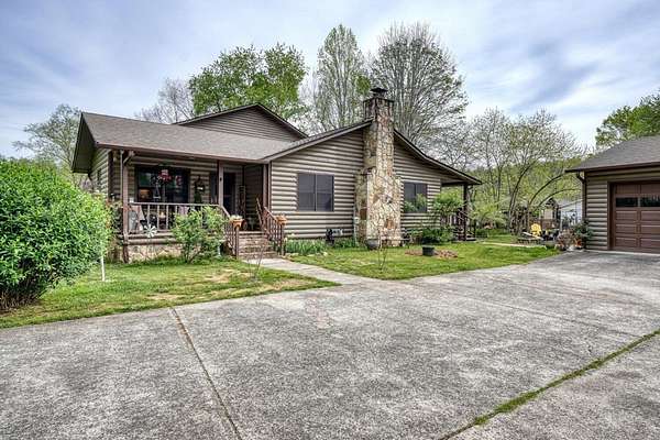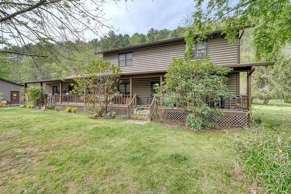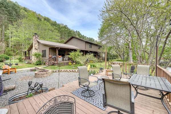 Welcome to your own private River front retreat nestled in the heart of the North Georgia Mountains along the beautiful Hiawassee River. This stunning 3.76-acre riverfront property offers the perfect blend of rustic charm, modern comfort, and endless opportunity. The spacious six-bedroom, three-bath home features a warm cabin-style exterior with classic wood D-log siding, complemented by a tasteful mix of wood and drywall finishes inside. Step into the inviting living room, where a beautifully rocked gas-log fireplace creates the perfect cozy gathering space. Gorgeous hardwood floors flow through the home, adding warmth and character. The thoughtfully designed layout includes two bedrooms on the main level, along with a massive family room that incorporates a dining area and convenient laundry space—ideal for hosting family and friends. Upstairs, you'll find four additional bedrooms, providing plenty of room for guests or large families. The spacious country kitchen is a true centerpiece, complete with stainless steel appliances, ample cabinetry, and a pantry for extra storage—perfect for preparing meals after a day of outdoor adventure. Step outside and take in the breathtaking river views from the large riverfront deck, or relax on the covered front and back porches. The expansive, level yard offers plenty of space for recreation, while the fire pit creates the perfect setting for evenings under the stars. Enjoy trout fishing, swimming, or simply unwinding right in your own backyard. Additional features include a 41x40 three-car detached garage, a 10x20 storage shed, and abundant extra parking for guests, boats, or recreational vehicles. With no HOA restrictions, this property offers flexibility and freedom for homeowners and investors alike. Whether you're looking for a full-time residence, a vacation getaway, or an income-producing opportunity such as a bed and breakfast or Airbnb, this exceptional riverfront property is truly one-of-a-kind.