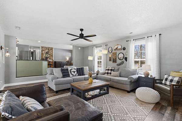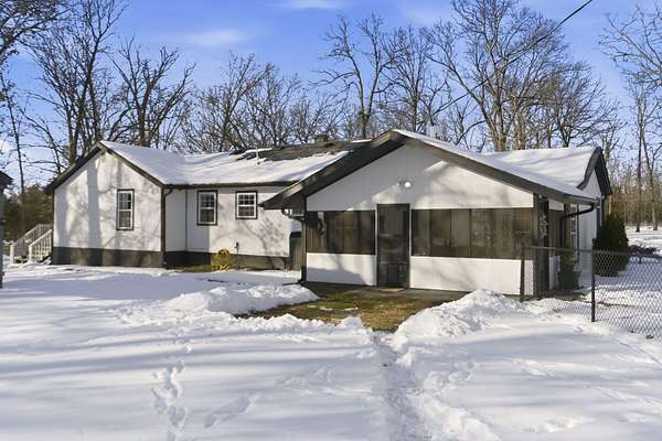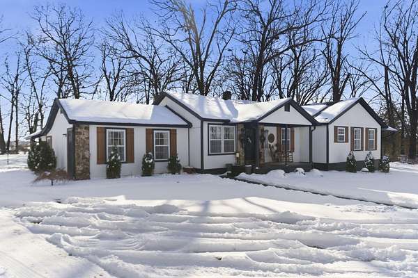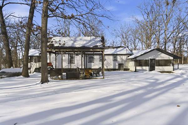 Discover this thoughtfully updated 3-bedroom, 2-bath home nestled on 10 picturesque acres in the highly desirable Ozark School District. From the moment you step inside, you'll appreciate the clean, modern feel created by new luxury vinyl plank flooring, updated trim, and a cohesive design throughout. The kitchen shines with recent upgrades including refreshed paint, a stylish backsplash, updated lighting and recessed lights, plus stainless steel appliances installed in 2022. It opens effortlessly to the dining area and spacious living room, offering an ideal layout for everyday living and entertaining alike. The primary suite is a relaxing escape featuring a remodeled shower, barn-style door, and new ceiling fan. Additional bedrooms have been enhanced with updated fans, closet doors, shelving, and hardware. The second bathroom has also been updated with new fixtures, mirror, and shower door for a clean, refreshed look. Outside, enjoy the best of both worlds with approximately five acres of open pasture and five acres of mature woods. A 30x40 shop provides excellent space for storage, hobbies, or equipment, while the large pavilion--complete with a new fan--is perfect for gatherings and outdoor enjoyment. A chicken coop and storage barn with new sliding doors add even more versatility. Recent exterior improvements include fresh paint on the home and shop, new shutters, black chain-link fencing, and new gutters with guards. For added peace of mind, the sellers are replacing the septic system with a brand new one. With extensive updates, functional outbuildings, and a serene country setting, this property is truly move-in ready. See documents section for a full list of updates.