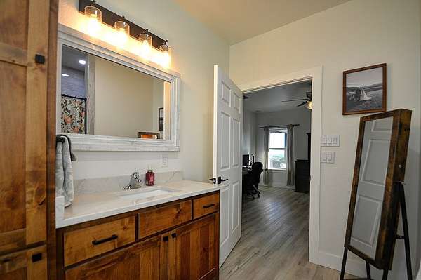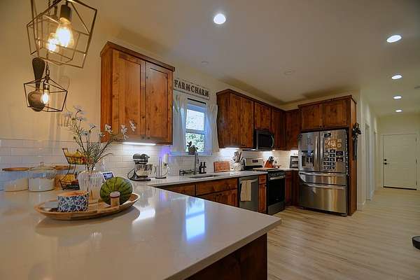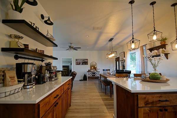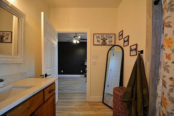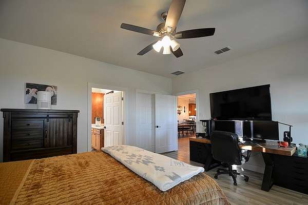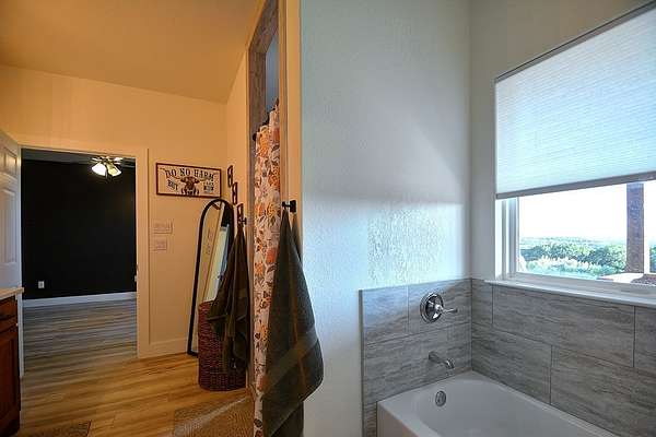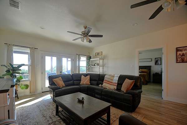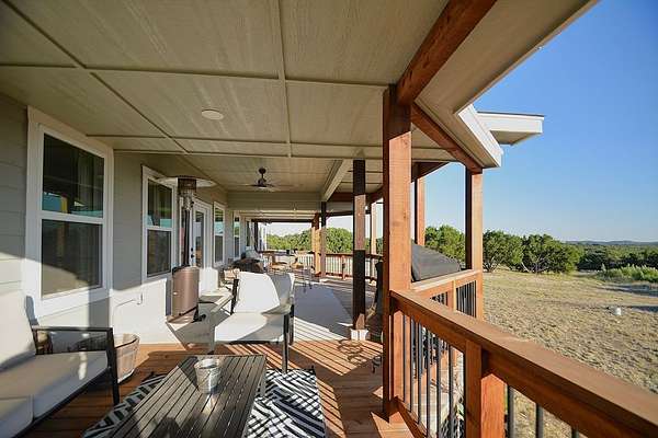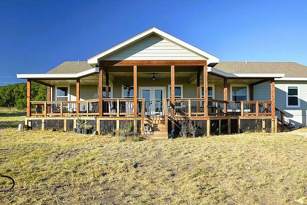 Enjoy the tranquility of the country w/ the convenience of the city. Custom built 2022 home is a rare gem: fresh & thoughtfully designed w/ a new covered rear deck stretching across the back of the home. Sweeping panoramas of the hills & valleys make this a perfect place for quiet mornings w/ coffee or lively evenings w/ friends under the stars. Step inside to a home that's warm, light & ready for life. Living room is a true gathering center w/ plenty of room for parties, holiday dinners, or casual nights w/ loved ones. Best of all, you can still see that incredible view right from the heart of the house. The home offers thoughtful accommodations, with a J&J bathroom linking 2 secondary bedrooms, each with generous WI closets. A sublime primary suite features a free-standing tub, separate shower & spacious WI closet. Ceiling fans throughout keep the home comfortable & breezy. This is more than a home-it's a home you can move in immediately w/ modern finishes, smart layout & no major work waiting. Property is fully fenced & comes with an electric & solar powered gates, giving you privacy, security, and an exclusive feel that sets it apart.