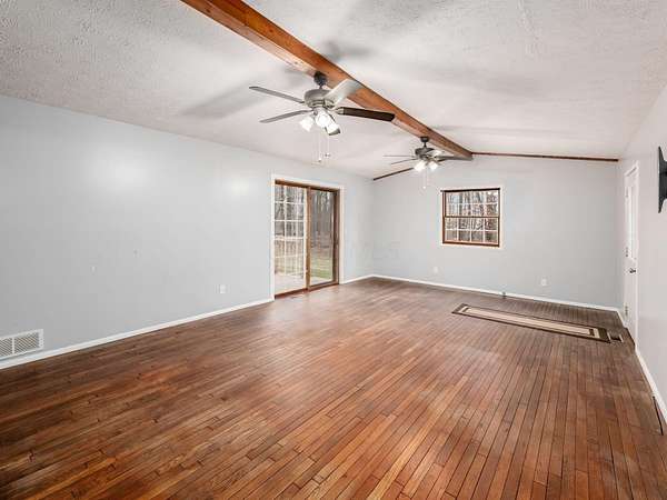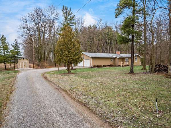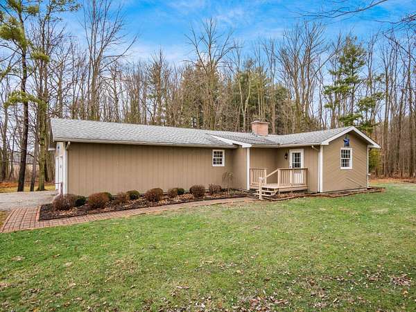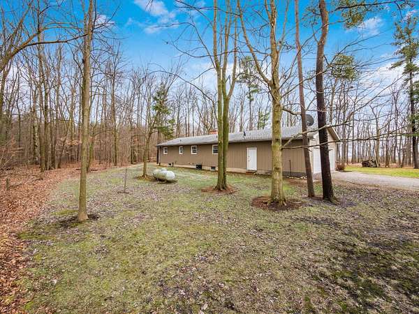 This move-in-ready ranch home sits on a scenic 3-acre parcel surrounded by woods, offering privacy, space, and a peaceful country setting. Inside, the home features three bedrooms and two full bathrooms with a practical, comfortable layout. The spacious kitchen includes stainless steel appliances and plenty of room for cooking, dining, and gathering. A large living room with hardwood flooring and a wood-burning fireplace creates a warm, inviting space for relaxing or entertaining. The basement provides excellent potential for future finishing, allowing the next owner to create additional living, recreation, or hobby space to fit their needs. Outside, the property offers room to enjoy nature, explore, or simply unwind, with wooded views in every direction. Enjoy the convenience of DelCo water while still experiencing a rural setting. With generous acreage, a functional home, and the opportunity to add value over time, this property offers space to spread out and make it your own.