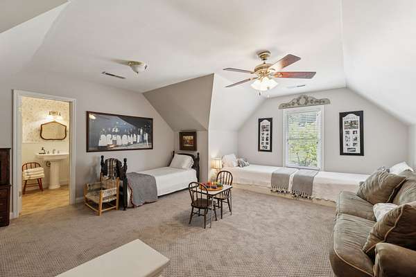 This home features a beautiful swimming pool, a spacious covered back porch with a stone fireplace, separate cooking area and a custom built-in pizza oven! Car/Truck/Hobbyists will love the two separate 2 car garages, spacious RV Barn with three 240V hook-ups and HUGE auto shop barn. There's also a charming full studio apartment above the detached garage which offers the perfect guest suite, art studio or private home office!!