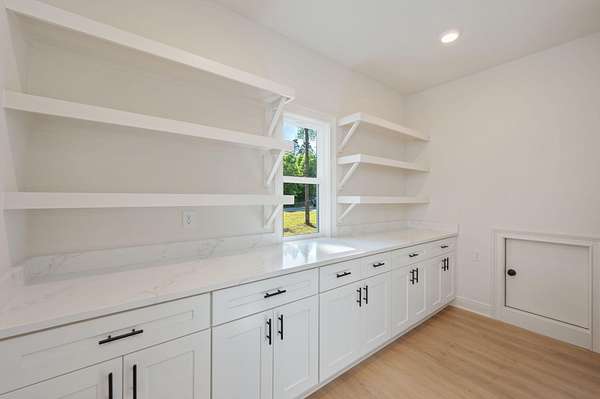 - Ceiling Raised, Kitchen Island, Lighting Recessed, Newly Painted, Pantry, Pull Down Stairs, Shelving, Split Bedroom, Washer/Dryer Hookup