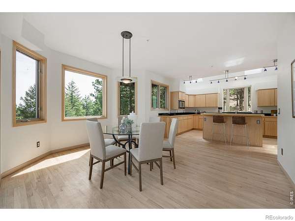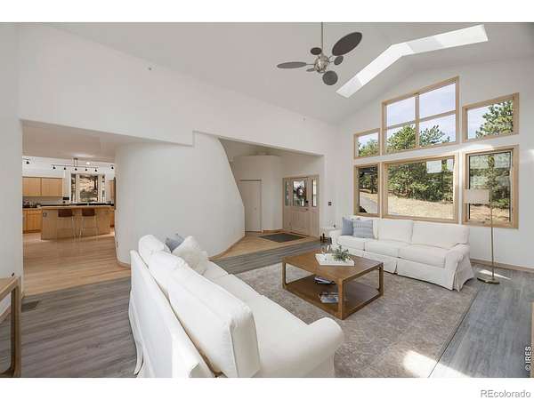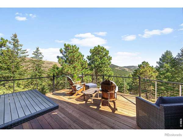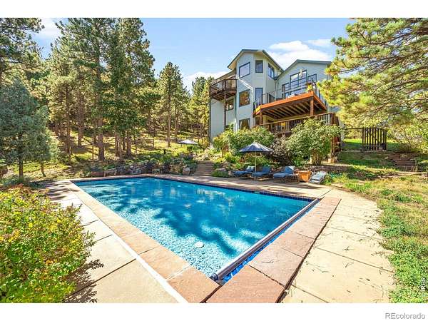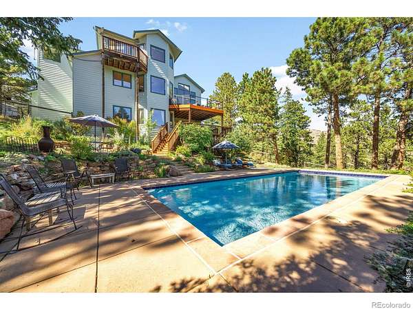 The Boulder Hybrid - Nature. Space. Views. Connection. Set in Boulder's coveted foothills, 191 Alaska Road offers a rare blend of privacy, panoramic views, and seamless indoor-outdoor living just 20 minutes from Pearl Street. This dramatic, light-filled home features an open floor plan designed for connection, with vaulted ceilings, skylights, and expansive picture windows that frame sweeping 360-degree views of the foothills and plains. The great room, kitchen and dining areas flow effortlessly to an outdoor deck, creating a natural extension of the living space-ideal for both everyday living and entertaining. The kitchen features a huge walk-in pantry and an island which provides additional dining and work space. A striking circular staircase leads to the primary suite with its own private balcony and incredible views. An adjacent loft/office provides a quiet, elevated workspace with separation from the main living areas. A spacious lower-level room offers flexibility as a media room, gathering space, or entertainment area. Outdoor living is central to the experience, highlighted by a large two-tiered patio that leads to the beautiful heated saltwater pool, blending seamlessly into the natural environment. Four distinct deck spaces offer multiple perspectives of the surrounding landscape and offer additional areas for gathering and entertaining. A welcoming water feature at the entry sets a tranquil tone, while the horseshoe pit creates an inviting space for relaxation and social connection. A brand new roof was installed in 2026 and professionally maintained grounds ensure year-round beauty and ease. Surrounded by open space and with easy access to nearby trails, the property offers a sense of retreat and privacy while remaining conveniently close to Boulder's dining, shopping, and professional centers-delivering the ideal balance of seclusion and accessibility.