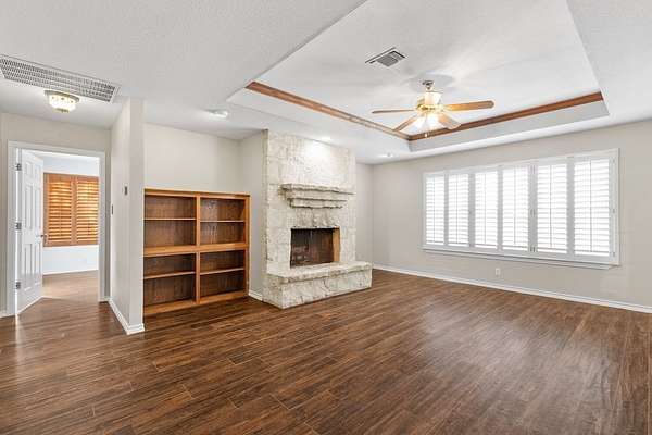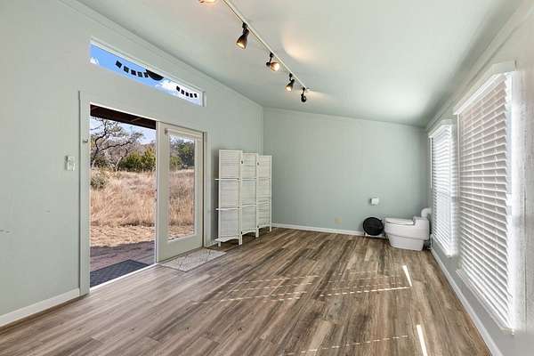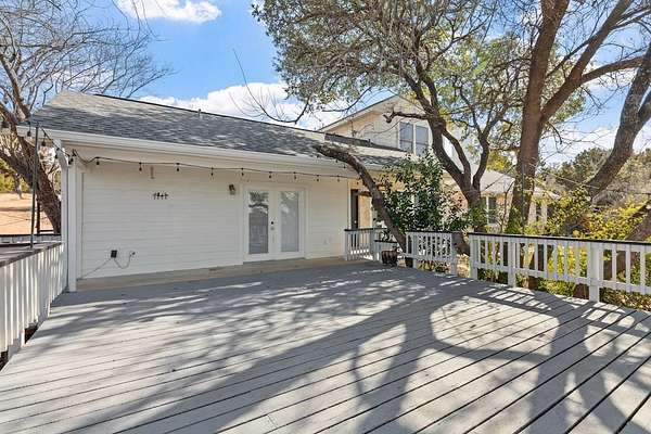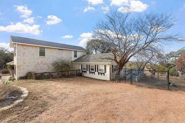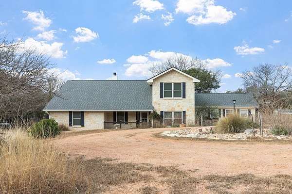 Discover the ultimate Texas Hill Country retreat at Campfire Circle, an exquisite five-bedroom, four-and-a-half-bath stone home perfectly positioned at the end of a tranquil cul-de-sac on 6.5 private acres. Just minutes from Fredericksburg's vibrant Main Street, this property offers an unparalleled blend of serene natural beauty and sophisticated living. Step inside to find a spacious charm and versatility, The main level features a formal dining room, a gourmet kitchen, and a cozy family room with a stone fireplace, plantation shutters and built-in bookshelves. The kitchen is a chef's dream, with custom wood cabinetry, granite-topped island seating, walk-in pantry and handcrafted blown-glass light fixtures by Garcia Art Glass. The cozy family room invites relaxation with its stone fireplace, plantation shutters, and built-in bookshelves. Adjacent to the kitchen, is a versatile bedroom with an attached full bath that can serve as a guest room or a private home office. The master suite is a true sanctuary, featuring a spa-inspired en-suite bath with a soaking tub, a spacious walk-in shower, separate his/her vanities, and an expansive walk-in closet. Upstairs, two generously sized guest bedrooms share a Jack-and-Jill bath, each boasting large walk-in closets and built-in shelving. There is also a bonus room offering flexible space for an office, art studio, or additional storage. Enhancing the home's appeal is a fifth bedroom suite studio, with a separate entrance off the spacious back deck, featuring its own en-suite bath--ideal for guests or extended family seeking privacy and comfort. OUTSIDE - The home is equipped with a brand new roof and stone exterior all around making for a secure and efficient home. Enjoy two storage sheds, a covered carport equipped with an EV outlet, and a detached heated and cooled studio building complete with a composting toilet and sink, perfect for an art studio, workout room, or creative space. The inviting back deck overlooks your own private campground setting, where rocking chairs, open skies, and breathtaking long-range views create a peaceful oasis. Wildlife enthusiasts will appreciate the large seasoned ponds nestled at the rear of the property and the property is a certified wildlife habitat, home to whitetail deer, birds, and other native creatures. In addition, this property is horses and livestock permitted. Campfire Circle is a Texas Hill Country masterpiece that combines timeless charm, exceptional functionality, and natural beauty in a private, peaceful setting--offering endless opportunities to live, work, and play in harmony with nature. This is more than a home; it's your personal sanctuary waiting to welcome you.