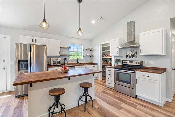 - Attic, Ceiling Fans, Eat In Kitchen, Pantry, Programmable Thermostat, Split Bedrooms, Wood Burning Stove