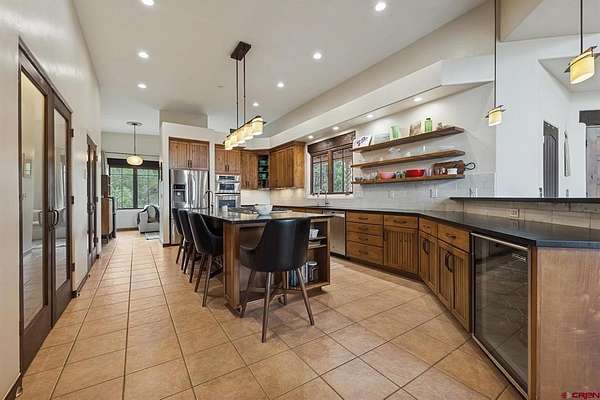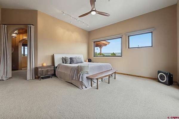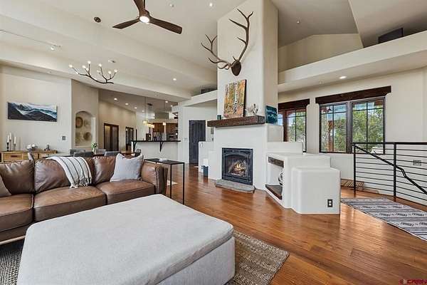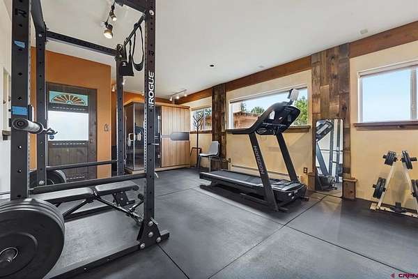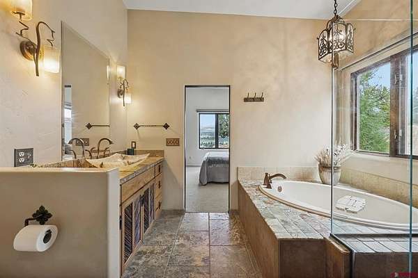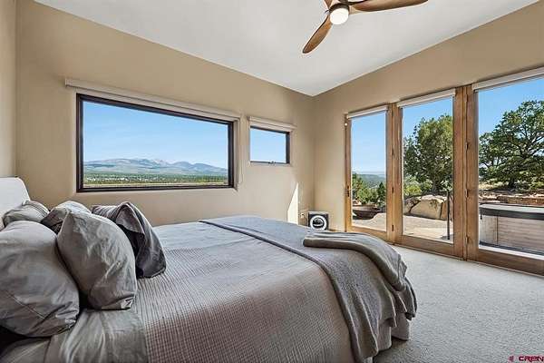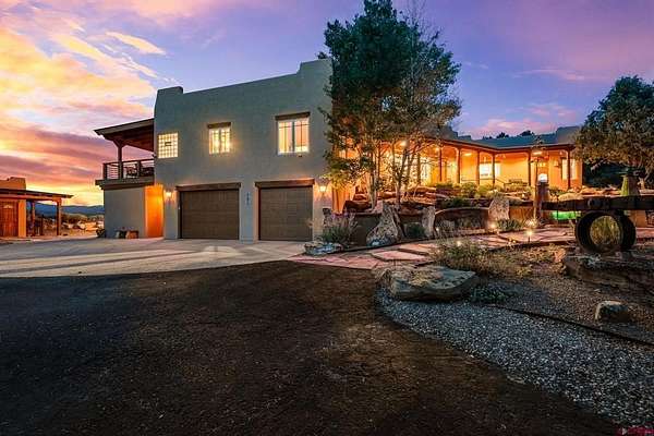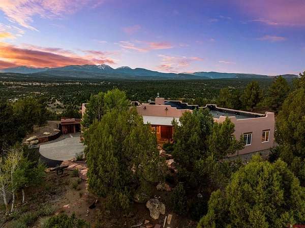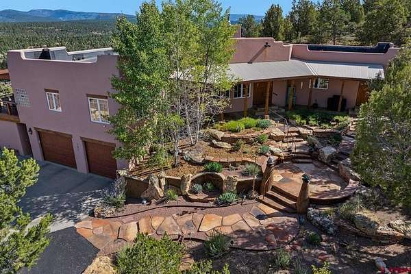 Gabi Bergstrom, RE/MAX Pinnacle, C: 970-946-7522, gabibergstrom@gmail.com, http://www.realpropertydurango.com/: Perched on 22.19 acres with unobstructed, sweeping views of the La Plata Mountains, this 3,561 sq. ft. custom residence offers the rare balance of privacy, artistry, and modern comfort. From the moment you arrive, the thoughtfully landscaped grounds with custom outdoor metalwork by Durango artisan Jeff Wise, hand-crafted details, and warm Southwestern architecture make it clear this is a truly special property. The 3027 main level is designed for both everyday living and entertaining, with expansive windows framing the mountains as the backdrop to the open-concept living, dining, and kitchen areas. A gas fireplace with a carved mantle anchors the great room, complemented by hand-hewn Hickory wide-plank flooring, art niches, and custom plaster accent wall and fireplace. The dining area features a striking new contemporary chandelier and access to the backyard, where the sellers recently added a covered deck and new railing, and hot tub. A stone-bench fire pit perfect setting for evening gatherings under the stars. The kitchen is a chef's dream, with a massive island, pantry, and upgrades including granite countertops, backsplash, new sinks, and floating shelves. Stainless appliances, a Dacor gas cooktop, and double ovens make this space as functional as it is beautiful. The main level is thoughtfully divided for comfort and privacy. Off the kitchen are two spacious guest bedrooms, each with blackout shades, that share a Jack-and-Jill bathroom featuring Onyx tile, a soaking tub, a walk-in shower, hand-forged lighting, and a dramatic underlit Onyx sink. A cozy family room nearby provides the perfect spot for TV, games, or relaxation with access to the outdoors. On the opposite side of the home, behind the great room, is the private primary suite with direct patio access, stunning mountain views, dual closets, blackout shades, double sinks, a jetted tub, and a walk-in shower with custom tile work. Down the hall, you'll also find the powder room with a custom copper sink, along with the office/library highlighted by a hand-carved bookcase and wide-plank wood floors. Additional recent upgrades extend to mini-split systems for air conditioning and heating in the bedrooms and living room, fresh interior paint, new garage doors, and blackout window coverings. The in-floor radiant heating system heats the main level, while downstairs features hot water baseboards. On the lower level, discover over 1,000 sq. ft. of versatile space: a two-car garage with in-floor radiant heating, a heated pottery/craft studio, a workshop, and a utility room. An additional 534 sq. ft. gym with hardwood floors underneath the rubber mats and an infrared sauna (included) is accessed from the exterior, offering a retreat for health and wellness. The gym could be also a great office or art studio. The outdoor spaces are a showpiece of their own, blending natural rock work, iron accents, and xeriscaping. An artistic 160 sq. ft. garden shed with handcrafted doors, carved wood posts, and a covered porch adds charm while providing practical storage.Every detail of this residence reflects the influence of fine artistry and craftsmanship. Inspired by Nicolai Fechin and the Taos Builders, and realized with heirloom-quality pieces by the Ernest Thompson Company, the home is both functional and a work of art. Whether hosting friends, pursuing creative passions, or simply soaking in the ever-changing panorama of the La Plata Mountains, this Trappers Crossing estate offers a lifestyle of serenity and inspiration just minutes from downtown Durango.