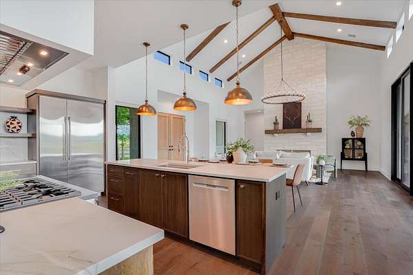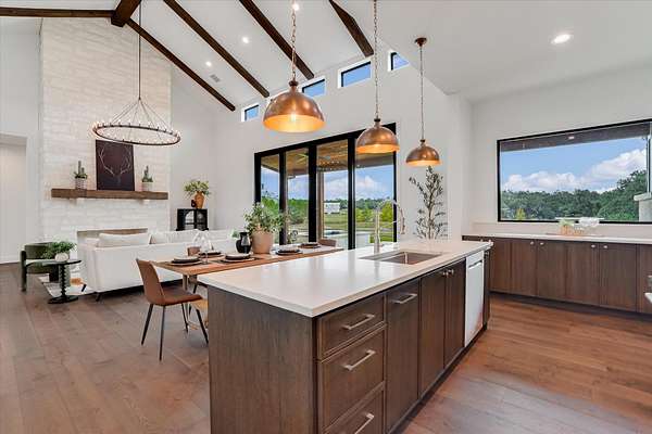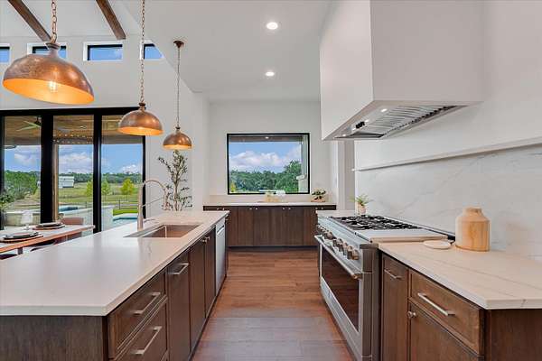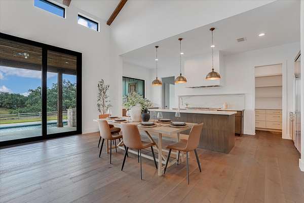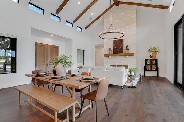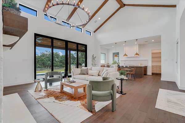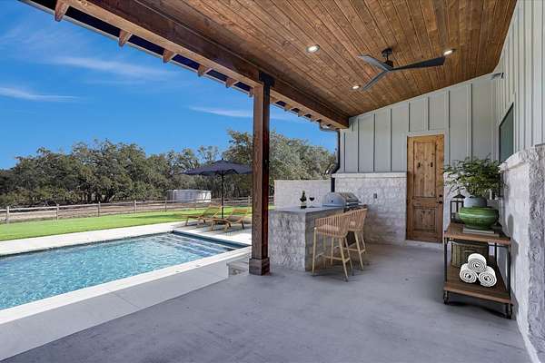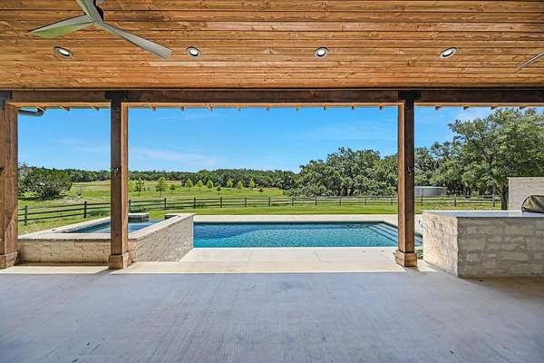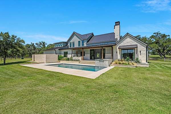 Welcome to your newly built dream retreat in the heart of Wimberley, Texas! Nestled on over 6 acres of lush, tree-covered land, this stunning property offers the perfect blend of seclusion, natural beauty, and modern luxury. Located in the highly sought-after Wimberley community and within the desirable WISD school district, this home is ideal for families and nature lovers alike. Step inside this charming 4-bedroom, 3 full bath, and 2 half bath home, where rich wood floors and a thoughtfully designed layout create a warm and inviting ambiance. The open-concept design ensures both comfort and functionality, while the spacious game room provides the perfect space for entertaining. A dedicated office offers a quiet and inspiring environment for remote work or creative pursuits. The chef's kitchen is a culinary masterpiece, featuring a GE Monogram 48" stainless steel range, built-in refrigerator, butler's pantry, and ample storage. The primary suite is a serene retreat, boasting a wood-burning fireplace, picturesque views of the pool and back acreage, and a spa-like bath complete with a soaking tub, double vanity, and walk-in shower. A large walk-in closet conveniently connects to the laundry room for ultimate convenience. For entertainment, the game room is the perfect escape, ideal for enjoying your favorite movies or sports, complete with a wet bar. Venture outdoors to discover your private oasis. A sparkling pool and spa, complete with an outdoor kitchen and dedicated half bath, invite you to unwind on warm Texas days. Towering trees provide shade and privacy, creating the perfect setting for gatherings, stargazing, and peaceful relaxation. This property also includes: 30,000-gallon rainwater system; Sprinkler system for lush landscaping; and Agricultural exemption for lower taxes. Beyond your doorstep, Wimberley offers a vibrant arts scene, charming shops, and renowned dining. Plus, with easy access to both Austin & San Antonio airports, travel is effortless.