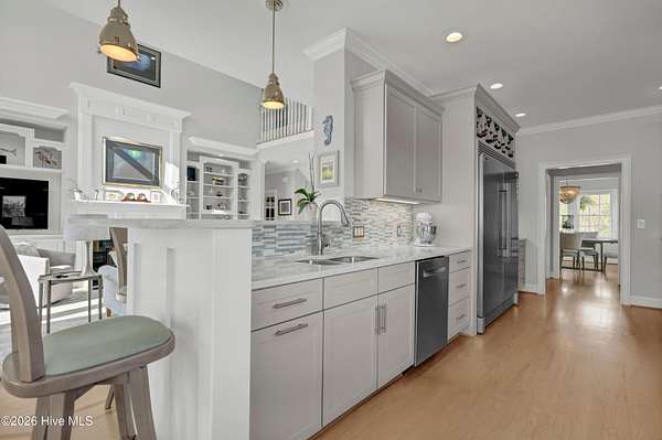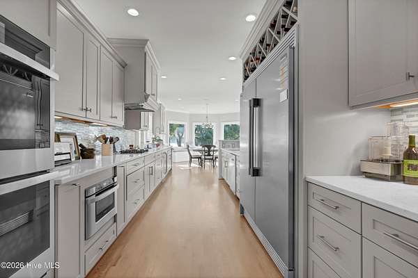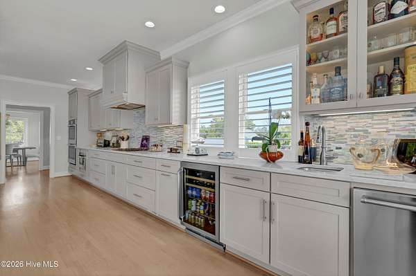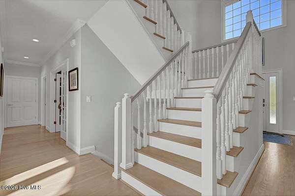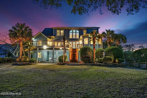 Gracefully elevated on an almost 2-acre lot in a quiet neighborhood, this beautifully renovated Intracoastal-front home offers approximately 3,450 square feet of bright, open living space designed to make the most of its incredible setting. The views are what truly set this property apart--wide, unobstructed water views of Lea Island and the Intracoastal Waterway create the perfect backdrop for everyday living, from quiet mornings to unforgettable sunsets. Perfectly positioned on the water, this property offers not just one, but three private boat slips--giving you direct access to the Intracoastal Waterway and endless days on the water. For those who love life on the water, it doesn't get much better. Whether it's a quick cruise, a day of fishing, or heading out to your favorite waterfront spots, you can be on the water in minutes. Boat ramp access is also available at the neighboring Forest Sound Marina, adding even more convenience for boating and coastal exploration. Every detail has been thoughtfully designed to maximize comfort, style, and those incredible water views. Inside, the home has been meticulously reimagined with a focus on quality, style, and livability, featuring light-filled interiors, open-concept gathering spaces, and a dedicated home office. Elevated finishes throughout create a seamless blend of modern sophistication and timeless design. The kitchen is a standout--ideal for gathering with friends and family, whether it's a casual weekend or a full house for the holidays. The primary suite offers plenty of space and comfort, with a spa-inspired bathroom featuring a walk-in shower, dual vanities, custom cabinetry, and a beautiful stained glass window. Two additional bedrooms with ensuite bathrooms and an additional den and flex room add comfort and convenience. The expansive garage has fresh epoxy flooring, half-bath, workshop space, boat storage, and room for golf carts, fishing gear, and outdoor equipment. This isn't just a garage, it's a wow factor. Outdoor living spaces are just as impressive as the interior, featuring a large waterfront deck, covered patio areas, and a firepit along the seawall. Whether coming in from the boat, grilling with friends, or spending the evening by the water, the layout allows for an easy flow between the dock, outdoor living areas, and main living spaces. The home also includes thoughtful infrastructure and system upgrades including generator setup, hurricane shutters and window protection, updated exterior doors and windows, central vacuum, whole house sound system, elevator shaft servicing multiple levels, and irrigation system, providing comfort and peace of mind for waterfront living. Located just north of Wilmington with convenient access to open water, waterfront dining, marinas, and Topsail Island or Wrightsville Beach by boat, this location makes it easy to spend the day on the water without ever getting in the car. Whether heading offshore, cruising the Intracoastal, or taking the boat to dinner, this is a home where boating is not a weekend activity but part of everyday life.