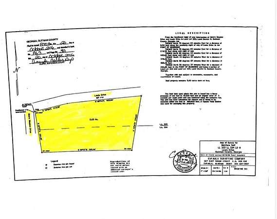 Est $436/moY'all don't miss this rare find! 5 acres of mostly open, flat land just waitin' for your dream home or mini farm. Located in the quiet and friendly Mossy Oak Subdivision, this slice of country heaven offers peaceful views, room to roam, and plenty of wildlife-think deer, turkeys, and all the beauty of the South. Just a short drive to the boat ramps, so bring your poles and paddle boats! Perc test has already been passed for a septic tank, so you're one step closer to settlin' in. No restrictions, so bring your animals, your ideas, and make it your own. Buyer and/or Buyer's Agent to verify all info. Owner is a licensed real estate agent in Alabama and Georgia.