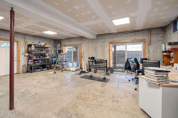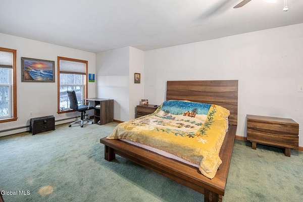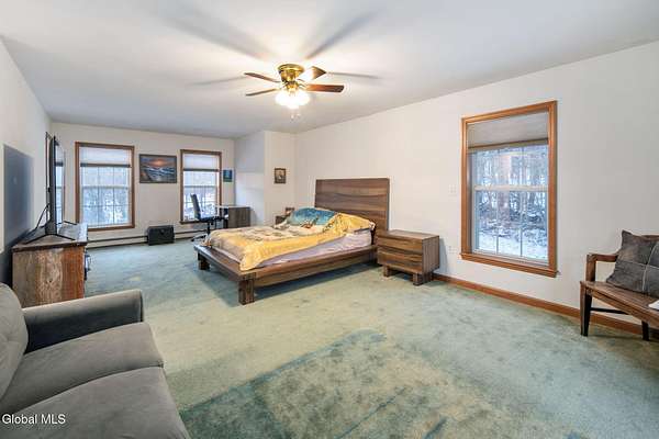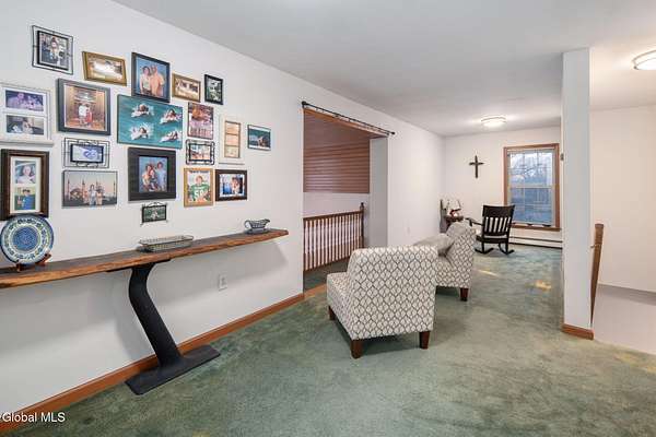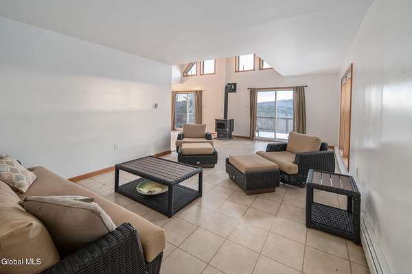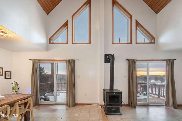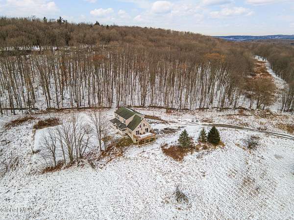 Discover a secluded dream retreat set on 111.4 acres of rolling meadows, mature woods, and sprawling trees that create exceptional privacy and breathtaking views. As you approach, an inviting covered porch welcomes you into this charming chalet-style home. Inside, the foyer provides a practical and spacious area for coats, shoes, and boots. The living room features a cozy wood-burning stove and expansive windows that fill the space with natural light while framing the surrounding scenery. The modern kitchen blends contemporary updates with country charm, offering an eat-in area for casual meals. A conveniently located dining room sits just off the kitchen and opens to the living room, making the layout ideal for family gatherings and entertaining. Sliding doors lead to a lovely deck where you can relax and enjoy the outdoors from the comfort of your home. The first floor includes two bedrooms, a full bathroom, and a laundry room for added convenience and ease of living. The second floor overlooks the main living area, enhancing the home's open feel and natural light. A spacious family room provides additional living space with beautiful views, while the private primary bedroom suite offers a peaceful retreat. The primary bath features a jetted tub and a separate shower for a spa-like experience. Additional features include a full basement for storage, a heated three-car attached garage to keep you out of the elements, and an extra two-car detached garage on the property. With abundant views and serene surroundings, this chalet is ready for your personal decor and vision. A truly special property and a must-see. *Additional Land may be purchased adjoined to this parcel (118.22 acres).