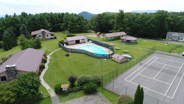 From H'way 52 & Blue Ridge Parkway in Fancy Gap, take the Parkway south for 3.5 miles turn left past the overlook and just past mile marker 203 into Chalet High. Bear immediate left on Olympus, the second left is Panorama Dr. House will be on the left.