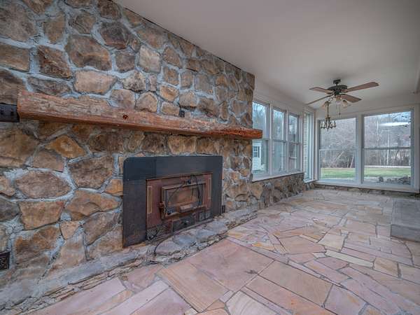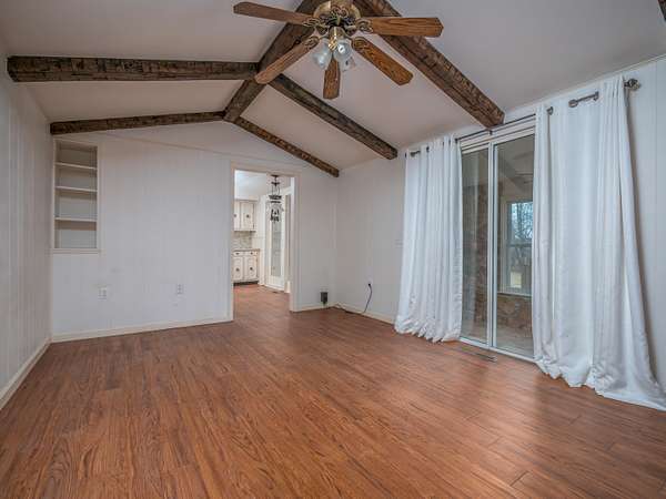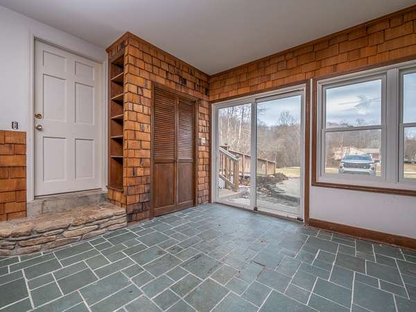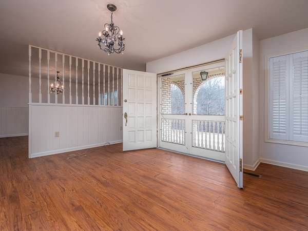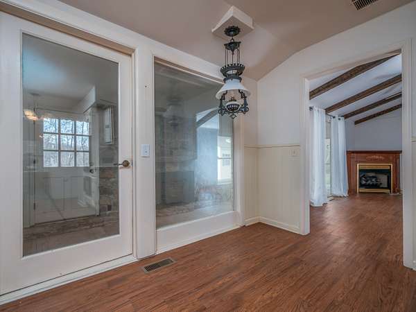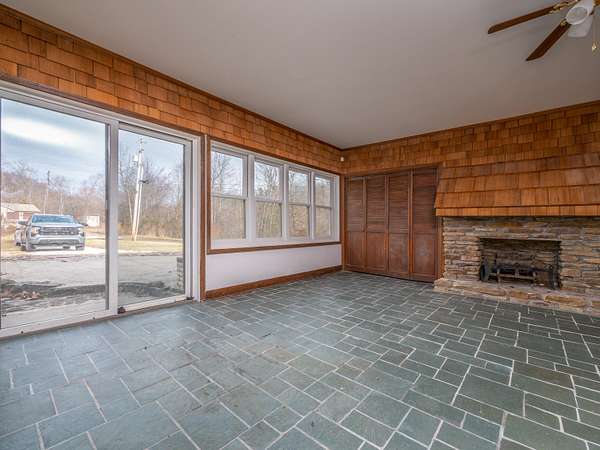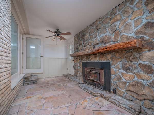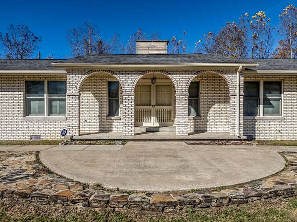 This 2,816 sq ft, one-story white brick home offers space, privacy, and a convenient in-town location. While inside the city limits, the property feels quiet and tucked away, just minutes from everyday needs. As you enter through the double front doors, a large foyer opens into a beautiful vaulted living room, creating an inviting first impression. The main living area features a brick fireplace and plenty of room for both relaxing and entertaining. The home includes three bedrooms, two full bathrooms, and two half baths, including a main-level primary suite and en suite bath. In addition to the main living room, there are three additional living spaces that provide flexibility for sitting areas, home offices, or gathering rooms, along with a separate dining room. A glass-enclosed room with a fireplace offers comfortable year-round use, while another enclosed space with washer and dryer hookups adds extra convenience. Outside, the large, flat yard is ideal for outdoor living, play, or future landscaping. Enjoy beautiful views of West Liberty, especially at night, adding to the home's appeal. With its classic style, generous layout, and rare sense of privacy in town, this home offers a unique opportunity.