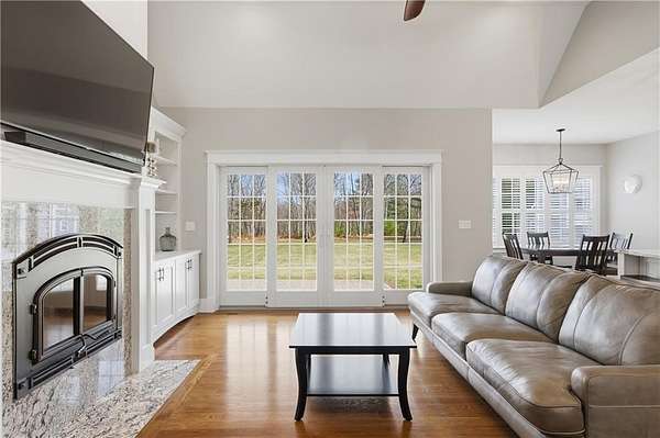 Welcome to PARADISE! Wrapped in Cedar Impressions vinyl siding, this stunning 6-year-young custom Craftsman-style ranch was thoughtfully designed for modern living. Open-concept Family rm featuring a dramatic tray ceiling & custom built-ins flanking a cozy fireplace-the perfect centerpiece for gatherings or quiet nights in. Beautifully appointed eat-in kitchen--white shaker cabinetry, gleaming granite countertops, spacious center island, & stainless appliances-ideal for entertaining. Hardwoods flow seamlessly throughout 1st flr. Primary suite is a true retreat, boasting a massive walk-in closet & a luxurious full bath w/ granite finishes. Two additional bedrms & 2nd full bath- plenty of space for guests. Convenient 1st-flr laundry. Finished bonus rec rm above the garage offers 350 sq ft-office, gym, or media space! Stick-framed construction w/laminated LVL beams & rafters, Anderson 400 Series windows & sliding glass door. Future expansion in the lower. Magical 5+ acre lot -offers unmatched privacy-protected land owned by Audubon and the city. Relax & entertain on the stone patio-watching nature daily- deer, birds & more. Private wooded trails for hiking/snowshoeing. 11 apple trees, a 14-zone irrigation, and beautifully maintained grounds. For hobbyists,, this property is a dream come true: ADDITIONAL detached 22' x 26' "mancave" garage-perfect for cars, boats, ATVs, etc;charming 12' x 12' post & beam sugar shack & Adorable 2-story 8' x 8' kids' playhouse. See you soon!