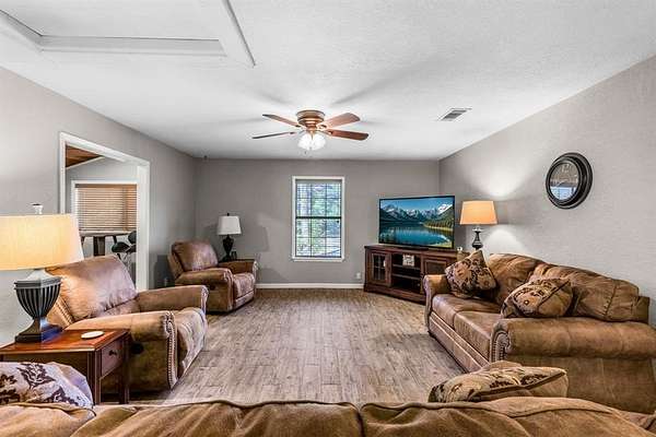 Tucked away on 2.5 acres of tall, shady trees in the beloved Buffalo Hunter Hills neighborhood, this 2-bedroom, 1-bath home is the kind of place where you'll want to put down roots and watch your family grow or relax in the woods in retirement. Inside, the cozy layout already feels like home, and there's room to make it your own. There is a room with a separate entrance that could easily become another bedroom if you wish, it has a heater and mini-split, while the bonus room near the living room makes a perfect playroom, study area, or office. Upstairs, the attic loft is ready to be brought back to life with the fun addition of a wall ladder--once filled with forts and children's laughter, it's just waiting to be the secret hideaway your kids will love. And since it is a pier and beam, it is easy to add a bathroom out of any of the other 2 spaces that could be an office or the front room with the mini split.