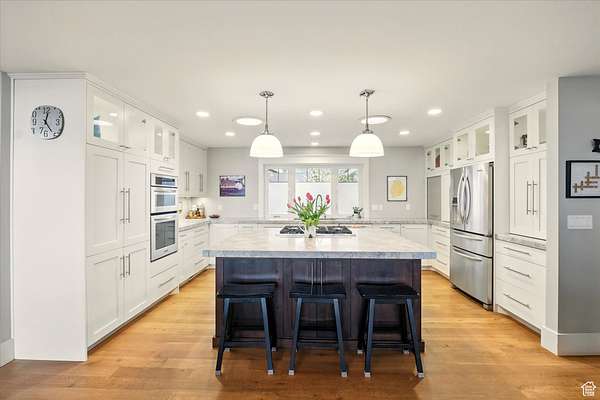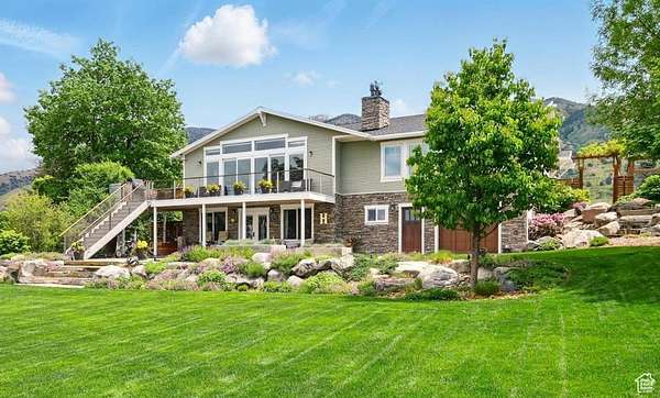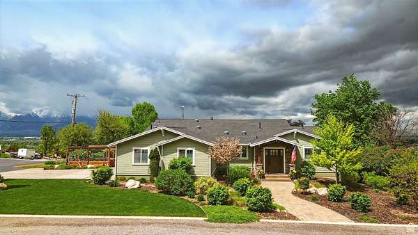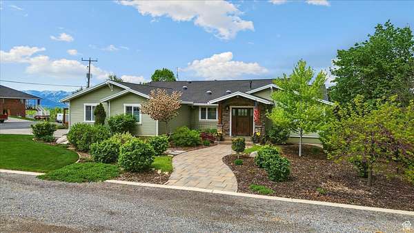 This exquisite property, boasting five bedrooms and four bathrooms, is an absolute gem in a serene, picturesque setting. Experience stunning mountain and valley views from both the main level and the walkout basement, providing a perfect backdrop for both entertaining and quiet enjoyment. This home is meticulously updated and designed for single-level living. The heart of this home is its beautiful kitchen, with one-of-a-kind granite countertops, updated cabinetry with soft close doors/drawers and extra drawers for easy organization, and stainless steel appliances, and huge pantry area, ready to cater to the culinary enthusiast and a great room with AMAZING views of the Wellsville Mountains year round. Downstairs, enjoy the flexibility of a library area that can be easily transitioned into a kitchenette or a wet bar, tailoring this space to your lifestyle needs. The oversized primary suite features amazing views, huge walk in closet and a beautiful bathroom featuring a heated jacuzzi tub and custom walk in shower featuring marble and Italian glass tiles. Three fireplaces keep the home warm and cozy in the winter. Step outside onto the expansive deck, where an outdoor kitchen setup awaits your summer barbecues, leading to a huge patio surrounded by beautiful landscaping. The garden area invites your green thumb, while the above-ground pool with a custom deck promises endless fun in the sun. An orchard area and a large field ensure privacy and opportunities for wildlife sightings (deer, turkeys, pheasants). Crafted for the hobbyist, a basement/backyard workshop with a garage door is ideal for all of your projects or holding your toys. Contact agent for a full list of updates and features. Buyer to verify all information.