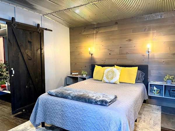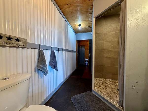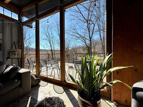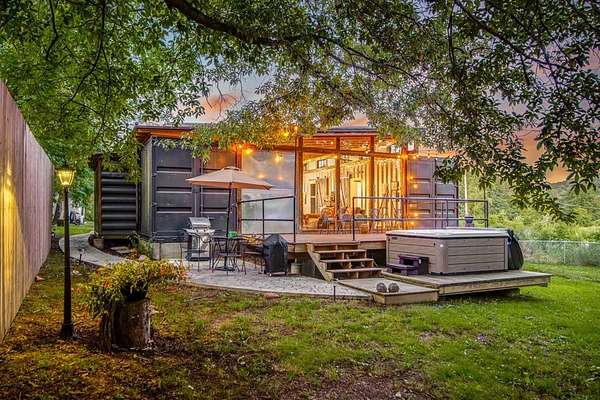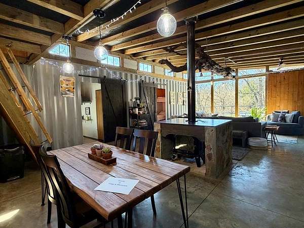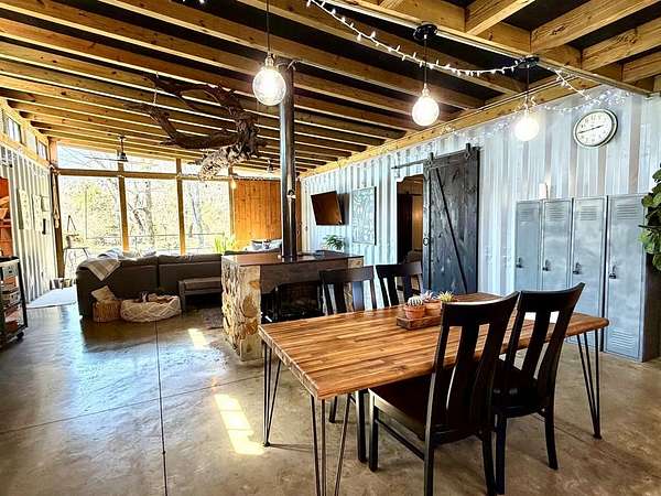 UNIQUE CONTAINER HOME RETREAT - This is more than a home, it is an experience! Crafted from repurposed shipping containers, blending modern design with natural surroundings. This 3-bedroom, 2-bath home features an open-concept kitchen, dining, and living area, along with a versatile loft space for additional sleeping, office, or recreation. A wall of floor-to-ceiling windows spans the rear of the home, filling the space with natural light and showcasing scenic wooded views, creating a seamless connection between indoor and outdoor living. Step outside to enjoy the private outdoor oasis with a spacious deck, hot tub, and entertaining area—perfect for relaxing or hosting guests. Surrounded by nature, the property also offers ample space for recreation. Currently operating as a successful short-term rental, this property is ideal as a turnkey investment, private residence, or weekend retreat! A rare and unforgettable property!