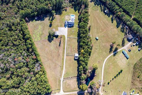 This is the one you've been waiting for! Almost 14 acres of equestrian paradise awaits at 191 Sweet Ln. An abundance of lush green pastures and tranquil beauty surround you! The stately main home welcomes you with its big country porch - perfect for watching your horses graze. Inside the home you will enjoy a bright and open floor plan with an abundance of space. Four large bedrooms, featuring a first level primary suite, four bathrooms, an unfinished FROG (not included in sq ft), a separate office, laundry room, dining, formal living room and flex room! A sparkling pool installed in 2022 creates endless opportunities for summer fun and entertaining! You will love spending starry nights around the fire pit out front! There is a fenced side yard perfect for the pups, an RV/camper hookup, a detached workshop with unfinished loft and covered equipment storage, and two fully functional barns with stalls, a tack/ feed room and hay loft. Both barns have been freshly renovated and are waiting to fill with all the ponies your heart desires! Numerous, fully fenced pastures with water run are ready to welcome your herd with ease. You won't want to miss the opportunity to enjoy this turnkey, horse ready property!