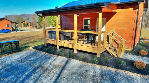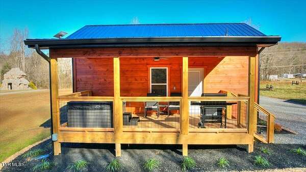 Tucked just 0.6 miles from Cosby Campground in the Great Smoky Mountains National Park and only 23 minutes from downtown Gatlinburg, this charming turn-key cabin offers the rare combination of peaceful seclusion and easy access to everything the Smokies have to offer. Step inside to soaring 10-foot ceilings and a warm, inviting interior designed for comfort and relaxation. The cabin comfortably sleeps four and features a well-appointed kitchen with granite countertops and an extra-large sink, perfect for everything from quick breakfasts to cozy dinners after a day of hiking. Equipped with StarLink high speed internet your time in the Smokies can include as much or as little connectivity as you would like. Watching your favorite movie will be pleasant and uninterrupted with dimmable lighting in the living and kitchen areas. Stay future-ready with a convenient on-site EV charger, making it effortless to recharge your vehicle while you relax and enjoy the Smoky Mountain surroundings. Outside is where this property truly shines. Start your mornings on the rocking chair front porch, coffee in hand, taking in a spectacular view of Mount Cammerer rising within the national park. Evenings are filled with the gentle sounds of Cosby Creek, crackling fires in the gazebo fire pit, and stargazing from the four-person hot tub, thoughtfully designed with privacy shade and dimmable lighting. Set on a spacious 3/4-acre yard, the property offers room to roam, abundant wildlife sightings, and a true sense of mountain tranquility. Additionally, this investment offers room to grow with potential development of a second dwelling for additional rental income should you wish to maximize your investment. A BBQ grill makes outdoor meals easy, while bear-proof trash can storage adds peace of mind. Whether you're soaking in the hot tub, listening to the creek, or watching deer wander through the yard, this cabin delivers an authentic Smoky Mountain experience. An excellent location, breathtaking views, the possibility to add another unit, and serene privacy make this property ideal as a personal retreat, vacation rental, or investment in one of East Tennessee's most sought-after mountain areas. This is more than a cabin-it's a gateway to the Smokies. This parcel has preliminary approval for a second unit from building and codes department, builder approval required and builder retains first right of refusal for completion of future development. Some images are representative All information contained in this listing is deemed reliable but not guaranteed. Buyer/buyer's agent to verify.