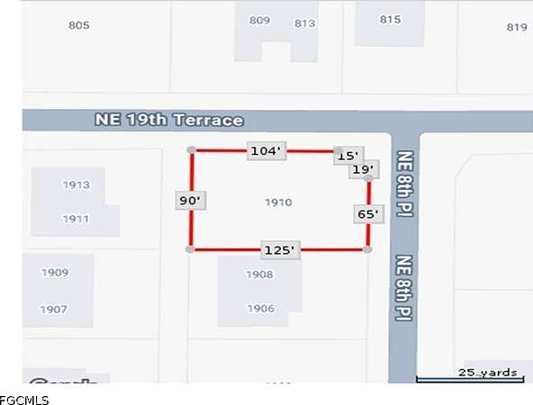 From Pine Island Road head north on Andalusia Blvd to right on NE 19th Ter lot is corner of NE 19th Ter and NE 8th Place look for sign.