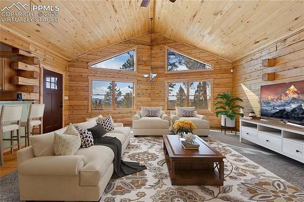 Experience the perfect blend of privacy, comfort, and wide-open space on this fantastic 40-acre property with breathtaking views in every direction. This beautifully updated one-level cabin offers true main-level living with 3 bedrooms, including a stunning primary suite featuring a spacious walk-in closet and a luxurious en suite bath with claw-foot soaking tub and walk-in shower. The open living area is filled with natural light, highlighted by vaulted ceilings and a cozy wood-burning stove, ideal for mountain evenings. The modern kitchen has been thoughtfully updated with granite countertops, a pantry, and brand-new stainless steel appliances, and flows seamlessly into a large laundry room conveniently located just off the kitchen. New hardwood flooring runs throughout the home, complemented by new carpet and fresh finishes. Outside, enjoy two brand-new Trex decks perfect for taking in the incredible views and peaceful surroundings. The property is fully weathered and winterized, with insulation beneath the cabin for year-round comfort. Multiple outbuildings add exceptional functionality, including two barns (one equipped with a 500-gallon cistern), a loafing shed, and a greenhouse, ideal for livestock, hobbies, or sustainable living. Just 25 minutes to Woodland Park and about a two-hour drive to Denver or DIA. A rare opportunity to own a turnkey rural retreat with modern updates, expansive acreage, and endless possibilities.
