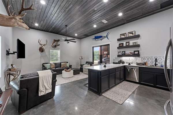 Complementing the main residence is a 4,000 SF barn with an additional 950 SF of comfortable living quarters, including 1 bedroom and 1 full bath--perfect for guests or ranch staff.