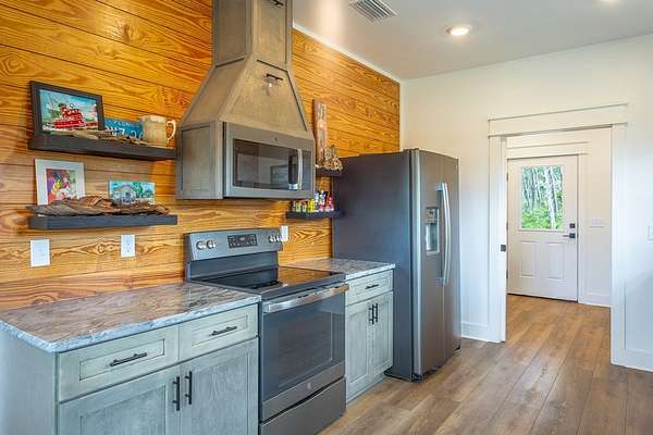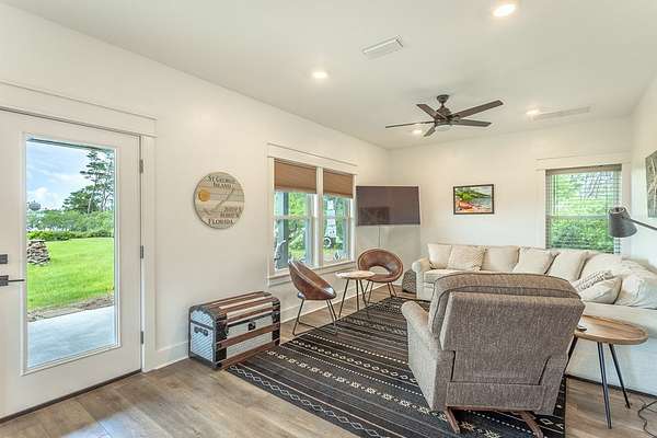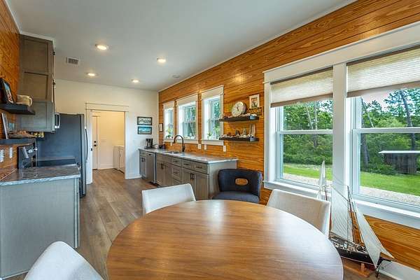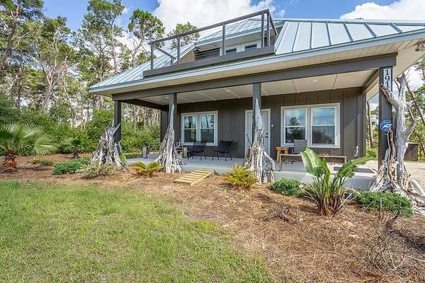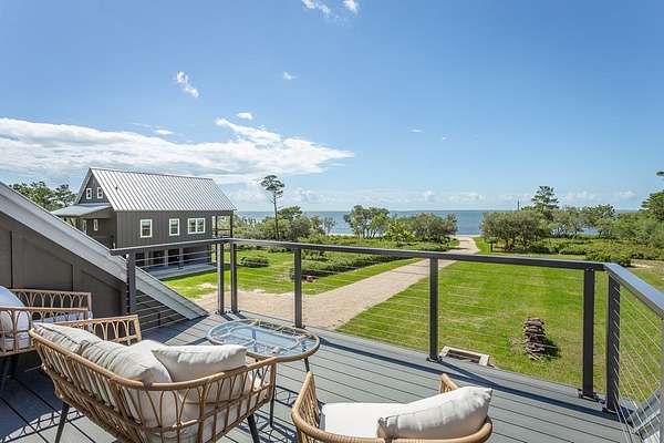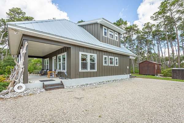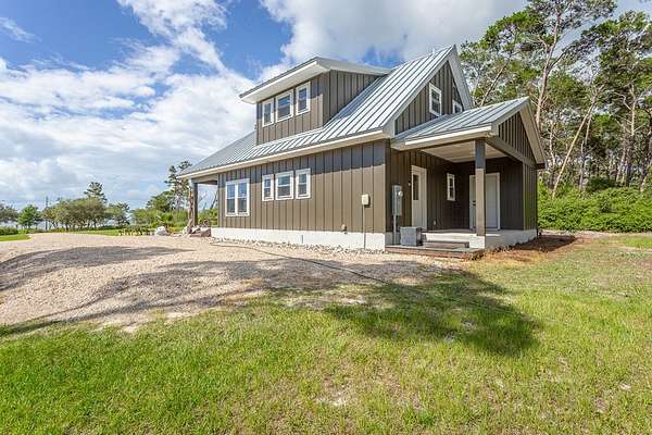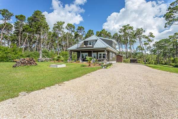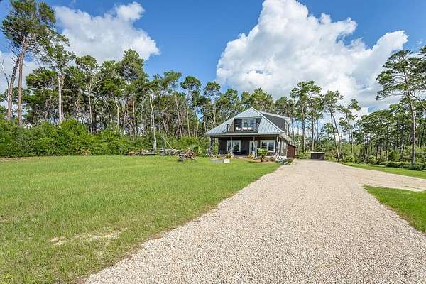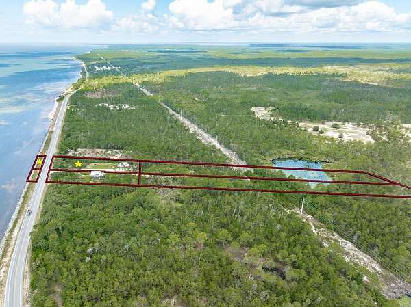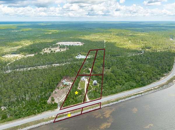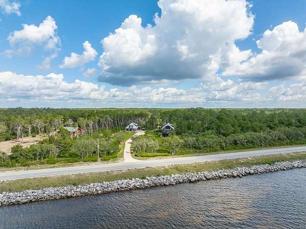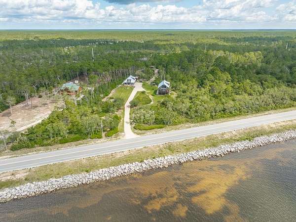 Stunning Bayfront Retreat on Florida's Forgotten Coast 1.5+ Acres | 2 Master Suites | Rooftop Deck Welcome to your dream coastal home set on 1.5+ acres of pristine waterfront along Florida's breathtaking Forgotten Coast. Nestled among mature trees and natural landscaping, this beautifully designed residence offers panoramic views of St. George Sound. Step inside the light-filled, open-concept interior featuring engineered hardwood floors, hand-troweled textured walls, pocket doors, and natural wood accents. The modern kitchen boasts quartz countertops, slate black appliances, and a spacious laundry/mudroom for added convenience. A large covered front porch and a rear porch with additional storage provide perfect spaces for outdoor living and entertainment. This home includes dual master suites one on each floor--each with custom features: Main floor master: Walk-in closet, tub/shower combo with elegant subway tile. Second-floor master: Double closets, walk-in shower with dual shower heads, private access to a rooftop deck with sleek cable railing. Upstairs, a flexible loft area with built-in storage and workspace makes a perfect home office or guest retreat. Additional Highlights: LED recessed lighting & ceiling fans throughout Pocket doors & matte black hardware Tilt-in windows with screens Hardie Board & Batten Exterior 1.5+ acre lot with mature coastal flora & planted grasses Unlimited water views and serene, private surroundings Whether you're seeking a permanent residence or a coastal getaway, this home is a rare blend of modern comfort and natural beauty. Come experience the magic of bayfront living. Additional parcels available for sale: See 1913 Hwy 98 and 1915 Hwy 98. This listing for 1911 Hwy 98 is indicated with a yellow star in the drone picture and includes the parcel on the water.
