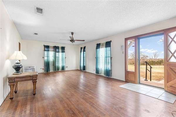 Est $2,816/moEnjoy country living just east of Denison on 7.5 beautiful acres on a hilltop with great views. This country house has 3 bedrooms and 2 baths with a enclosed patio, perfect for a game room or cozy 2nd living area and original hardwood floors.. Mature oak and pine trees with a pond. Natural gas appliances including a tankless water heater. Outside the city limits meaning no city taxes and no restrictions. On Oakridge Southgale water coop. Previous foundation work done in May of 2023, report attached. Roof replaced in June 2021. Septic system updated in 2008. Come see this great peaceful property today!! Property being sold as is.