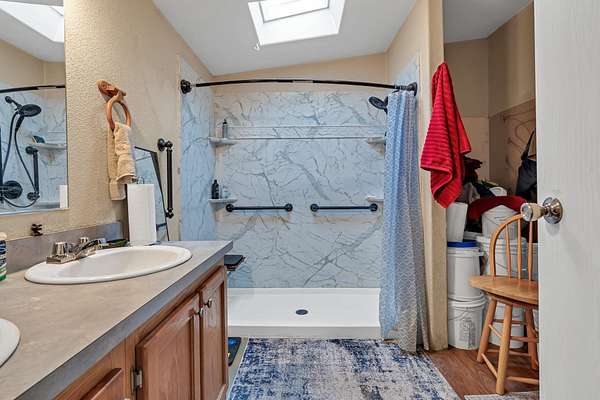 - Custom Cabinets, Double Sink, Pantry, Shower Enclosure, Tub/Shower Enclosure, Walk-In Closet