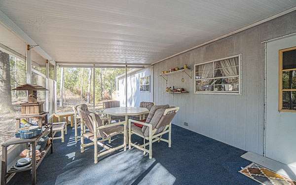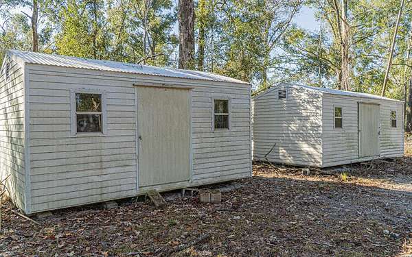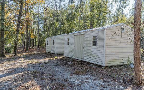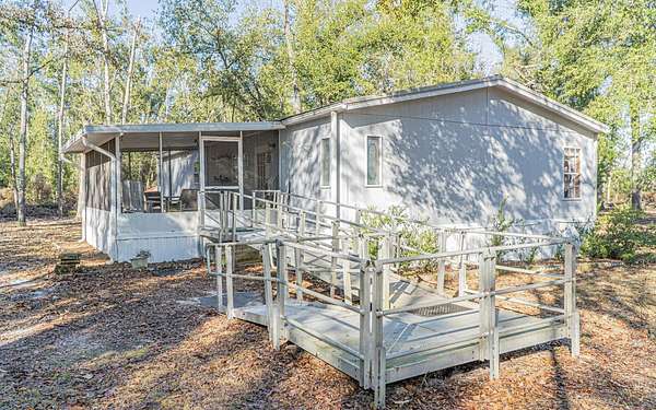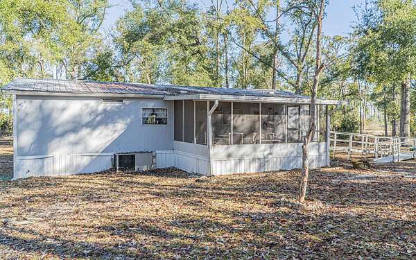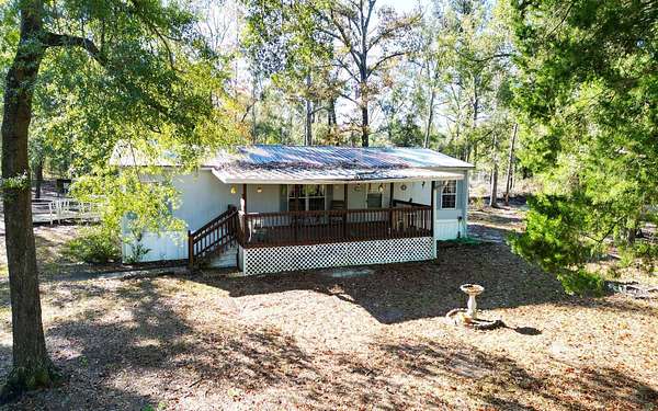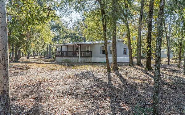 Est $1,116/mo4.82 acres in Suwannee County featuring a 3-bedroom, 2-bathroom mobile home with a screened front porch and a covered back deck. The home includes a functional layout with a combined living and kitchen area and a split-bedroom design. The property also offers three sheds for storage or equipment. Plenty of open space for gardening, animals, or additional structures. A solid option for anyone looking for usable land with existing utilities and a move-in-ready home.