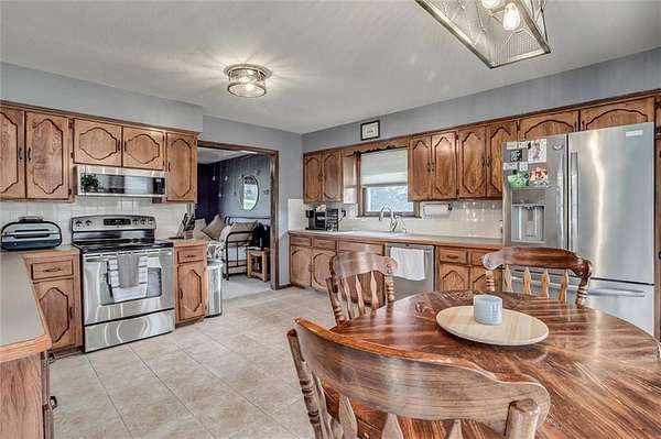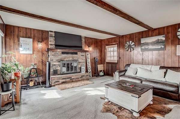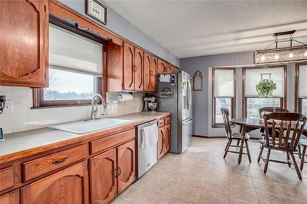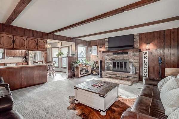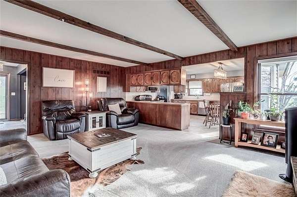 Don't miss this beautiful property situated on 5.56 acres! It features two large ponds tucked away in a wooded area at the back of the property, along with a swimming pool and a picnic/bonfire area located behind the outbuildings. This raised ranch home offers 3 bedrooms on the main level and a non-conforming 4th bedroom in the basement, all with new paint and carpet. Laundry has conveniently been brought upstairs and is hidden behind a barn door on the main level. The main level also includes a formal living room and a dining room, tastefully separated by a barn door. You'll also find a spacious family room with a beautiful brick fireplace, 2 full bathrooms, and a warm, country-style kitchen with plenty of cabinets and a cute breakfast nook overlooking the deck and fenced yard. The lower level has an entirely separate living quarters, complete with a second kitchen, a large family room with a wood-burning stove, a full bathroom, and an office area. A small 9' x 12' shed sits just outside a fenced area for dogs. The property also includes an approximately 40' x 60' barn with partial concrete flooring and electricity, plus another building positioned to overlook the ponds. With ample living space, multiple outbuildings, and stunning outdoor features, this property provides exceptional versatility for families, hobbyists, or those seeking peaceful rural living. Schedule your showing today to see its full potential.