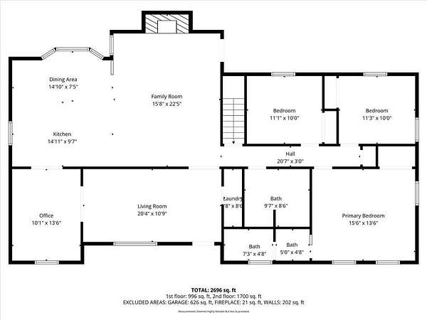 - Basement, Bathroom x 3, Bedroom x 3, Dining Room, Family Room, Kitchen, Laundry, Living Room, Office