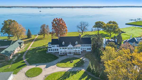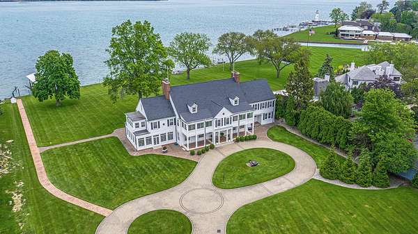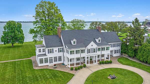 MOTOR CITY ICON AND ARCHITECTURAL PEDIGREE Pass through the stately stone pillars of this landmark Grosse Ile estate and enter a''time capsule''of Detroit's Golden Age.Originally custom-built for Charles Fisher co-founder of the Fisher Body Company and VP of General Motors by the preeminent architecture firm Smith, Hinchman, and Grylls, this nearly 10,000 sq. ft. masterpiece stands as a significant and rare surviving example of the Fisher family's architectural legacy. Set far from the road on a picturesque 3 acre lot, the property offers unmatched privacy and 200 feet of prime Detroit River frontage with sweeping views of Canada. From the grounds,enjoy an incredible architectural panorama: the historic Grosse Ile Lighthouse, the iconic Ambassador Bridge, and the stunning new Gordie Howe International Bridge.THE INTERIOR: A PRIVATE MUSEUM OF CRAFTSMANSHIP The grand foyer, finished in luxurious Italian marble, leads to a spectacular sun porch on the east side of the home.This vantage point offers breathtaking vistas of the Detroit River and scenic Canadian shoreline.Soaring 12-foot ceilings are adorned with plaster medallions and astounding crown moulding,reflecting the "GM-spec" standards of its original owner.Meticulous design elements featuring cherubs, flora, and fauna are coupled with robust,high-end materials.The formal living room,anchored by an exceptional carved Carrara marble fireplace with egg and dart details,provides an elegant setting for a 1915 Steinway baby grand piano.Adjacent, the paneled library with built-in bookcases offers a quiet retreat or an executive home office. CULINARY EXCELLENCE AND ENTERTAINING Designed for large-scale hosting,the chef's kitchen features a center island, wall oven, cooktop, and a bright breakfast nook with built-ins.A full butler's pantry with a wet bar connects to the formal dining room,which features a hand-carved wood fireplace and expansive river views. Surrounded by windows,the Florida room functions well as a family room,offering abundant natural light as well as warmth with moody paneled mountain ash walls,coffered ceilings, and a bronze chandelier that is a true work of art.Three bathrooms on the main floor, including two formal powder rooms, are perfectly situated for guests.PALATIAL PRIVATE SUITES AND UTILITY The upper level features 7 bedrooms and 9 bathrooms (6 full/3 half). Several bedrooms boast private sun porches to enjoy the natural island scenery and cooling river breezes.The primary suite is a massive retreat with an adjoining dressing room, dual tiled bathrooms, and custom walk-in closets with built-in wardrobes.A cavernous walk-up attic provides limitless storage.The lower level is equally impressive,featuring original terrazzo flooring,a workshop,and a walk-in vault for wine storage or valuables.A Bilco door entry provides easy access for transporting large items.THE GROUNDS:THE ULTIMATE MARITIME LIFESTYLE Outside, marvel at over 200 ft of river frontage for docking, fishing, and water sports-a front-row seat to the Great Lakes'shipping channels.An illuminated brick paver path leads to a riverside patio for witnessing glorious sunrises over the banks of Ontario.The property includes an opulent 6-car garage with carriage doors,electric service,and its own half bath. Situated just one mile from the toll bridge and 30 minutes from Downtown Detroit,this is a rare opportunity to own a piece of Detroit's history. Pre-approval required prior to showing. Agent is related to the seller.