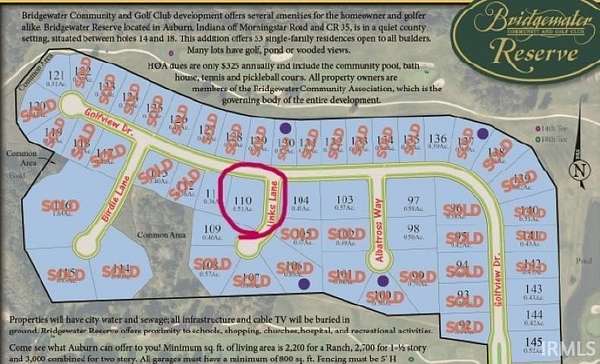 - Assoc, Fence, Golf Course, Sidewalks, Storm Sewers, Street Lights, Underground Service