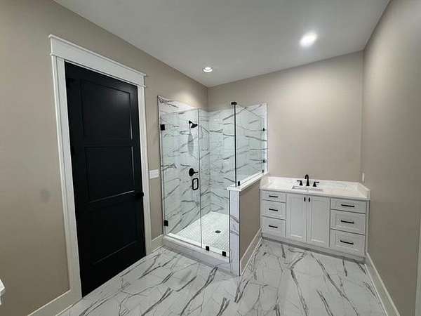 - Concrete Walks, Covered Front Porch, Covered Patio, Landscaping, Stamped Concrete Walks