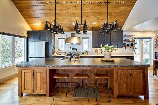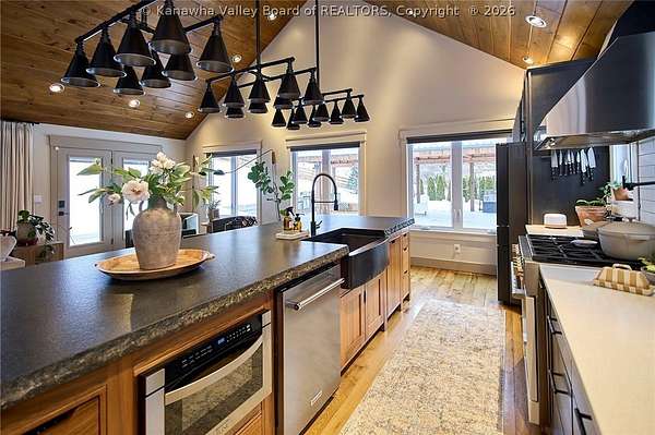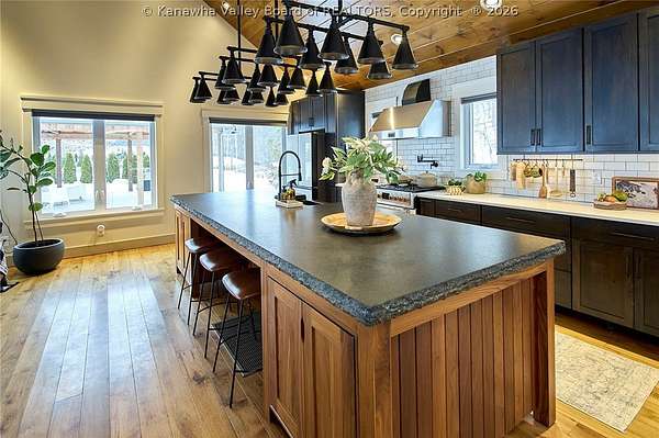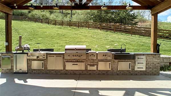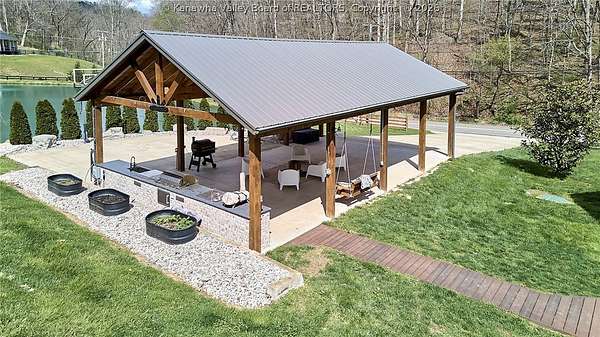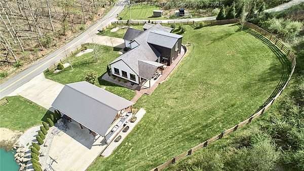 This extraordinary 22- acre property offers the perfect blend of luxury, craftsmanship, and outdoor living. Outside, you'll find an oversized outdoor kitchen, a covered patio ideal for entertaining, a large workshop, a 40x50 open barn/storage building with a hog pen, and a beautiful pond that completes the peaceful setting. Step inside to custom finishes at every turn. Hickory flooring flows throughout the home. The stunning 4-inch solid granite island with hand-chiseled edges anchors the kitchen, complemented by custom cabinetry, high-end Fulgor Milano appliances, and striking black iron lighting and shelving. Offering 4 bedrooms, 2.5 baths, dedicated office space, and a separate hangout area for kids, this home was thoughtfully designed for both everyday living and entertaining. Numerous updates have been completed, including a significant addition- See attached list for full details.