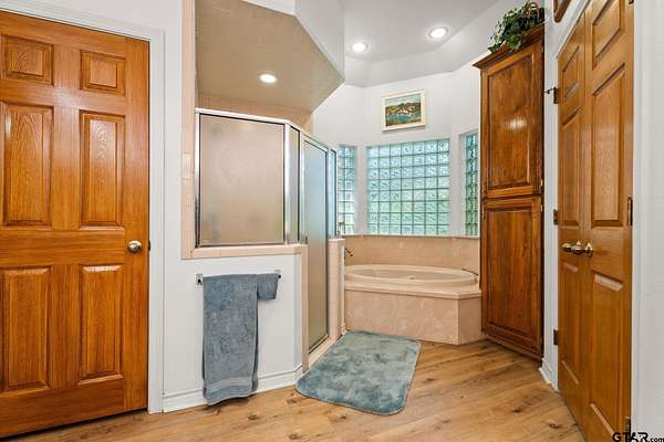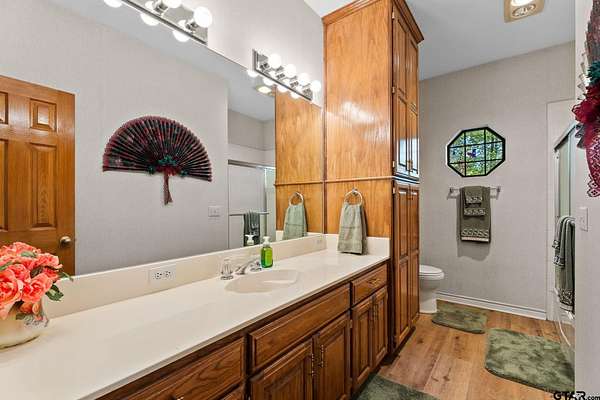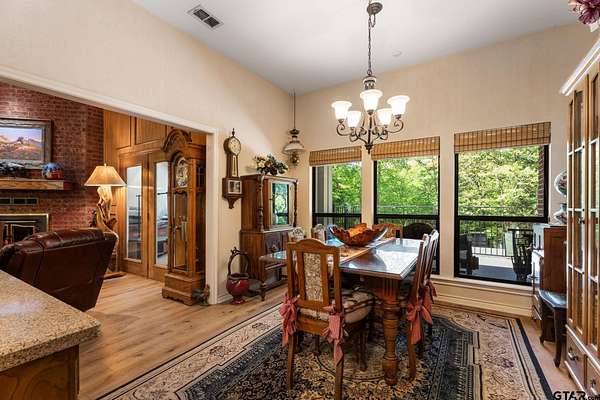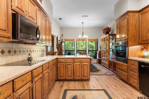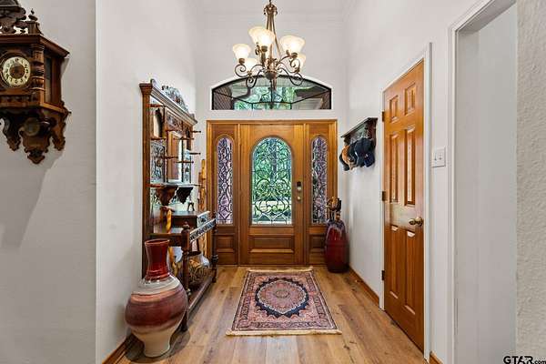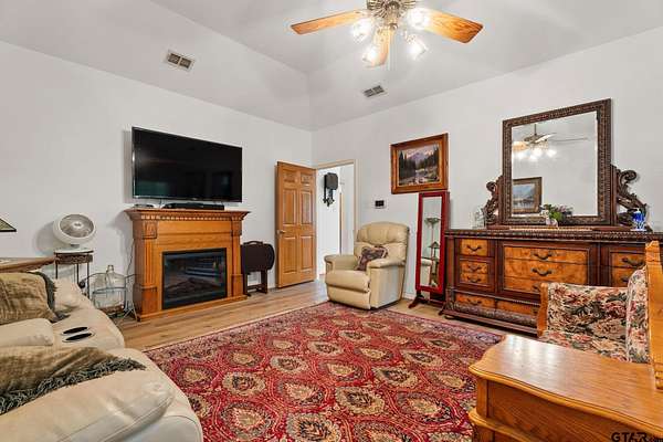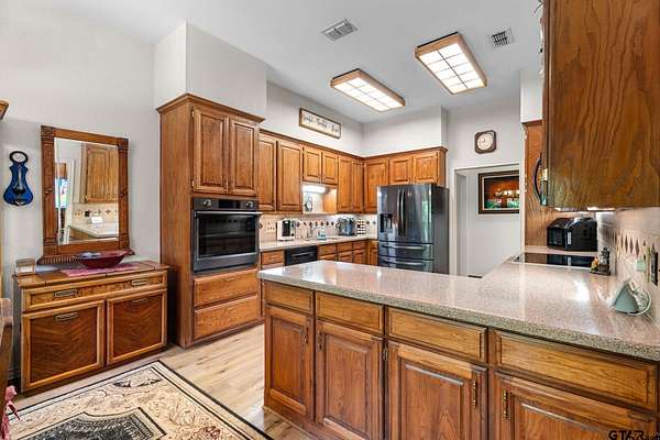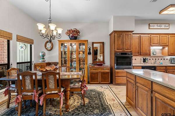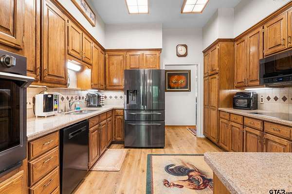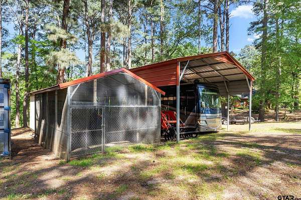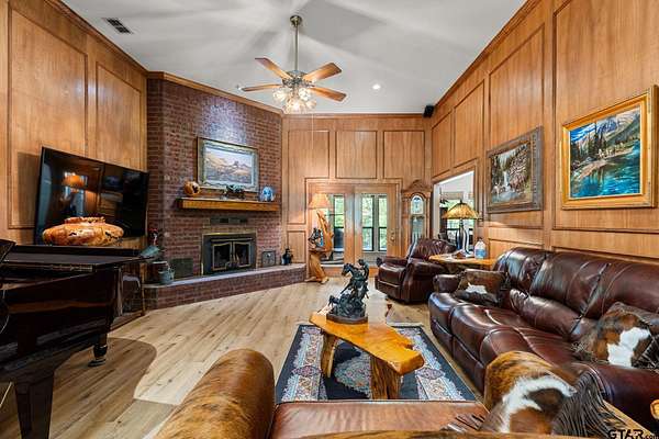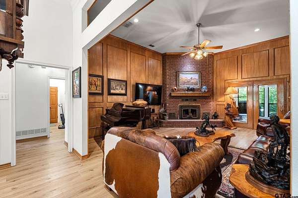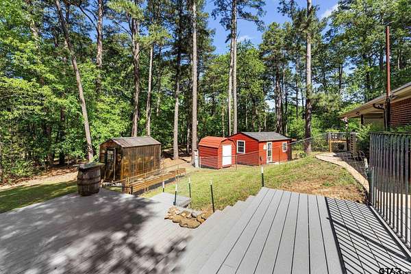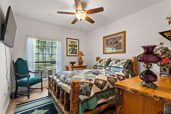 A beautiful custom built country home, sitting on 5 park-like acres, surrounded by pipe fencing with custom gate entry. The moment you walk in you will be amazed by the custom Wayne's coating design in the living area, custom solid wood cabinetry in kitchen and bathrooms and 9-12 foot ceilings throughout. This spacious 3 bedroom, 2 bathroom with 2 bonus rooms (currently a music studio and game room) and a separate sunroom is perfect for all your entertaining needs. The oversized laundry room and walk in pantry make it nice for extra food or kitchen equipment storage. Master bedroom is spacious with plenty of sitting room. Master bath has walk-in closet and a spacious cedar closet. Never have electrical issues with the whole house backup generator. Step outside to a wonderful outdoor area with new composition decking (2024) and a cascading waterfall that leads to a Koi pond. The back part of the property backs up to the gorgeous Falls Creek. Property has horse pens, corrals and tack room. Crossed fenced for multiple animals. Hen house was built with full protection from snakes and other varmints. Large shed for Motorhome storage or put all your farm equipment. The shop/barn with overhead door, greenhouse, and nice sized hobby shed fulfill every family member's needs. Enjoy the water well (in cute well house) or city water for watering needs. Not only is there a 2 car garage but also a recently added 8 space concrete carport. The windmill, flagpole and concrete flower vases at gate stay with the home. This property is a must see!!