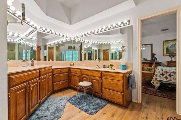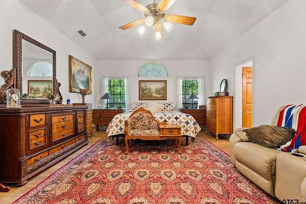 From Tyler: Travel South on Old Jacksonville Hwy to traffic light in Flint. Turn right at traffic light on FM 2868, travel 3 miles to Falls Creek Estates entrance on left. Turn left on Falls Creek Dr. House is on the right of cul-de-sac at the end of the street. Sign in yard.