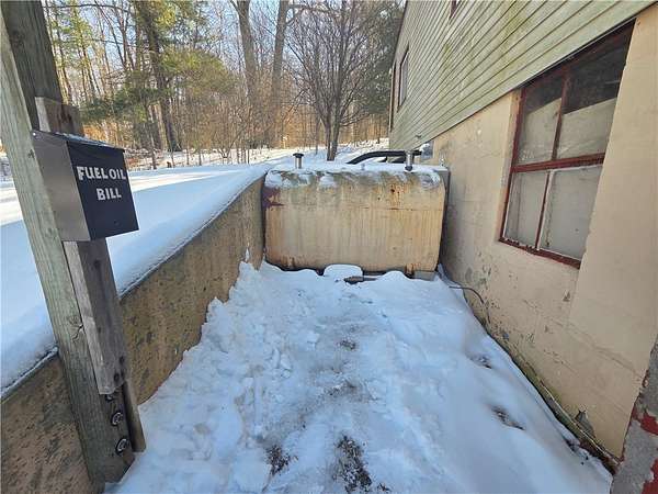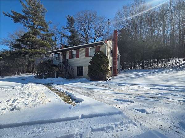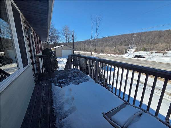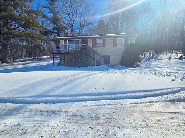 Discover the potential in this 3-bedroom, 1-bath raised ranch set on 6.5 private acres in the Town of Veteran. Tucked away in a peaceful setting, this property is ideal for buyers seeking acreage, privacy, and affordability. The main level offers a generously sized living room, three comfortable bedrooms, a full bath, and an eat-in kitchen. Just off the kitchen, enjoy the enclosed back porch featuring a hot tub-perfect for relaxing while overlooking your land. The lower level offers higher ceilings and excellent potential to be finished for additional living space. A detached garage provides ample room for parking, storage, or a workshop. Major mechanicals are in good condition-bring your vision and a little TLC to make this property truly your own. Sold as-is. Cash or Conventional loan.