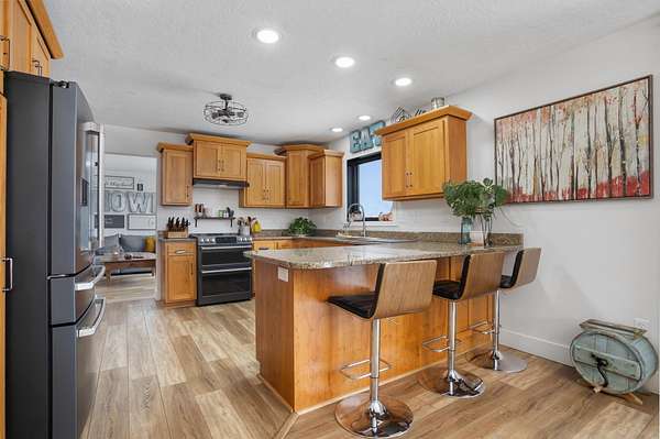 Space, privacy, and views, all within city limits! Discover a rare in-town acreage offering refined living with breathtaking coulee views. Set on 1.64 acres backing onto a picturesque coulee, this beautifully updated 5-bedroom, 4-bathroom residence blends timeless craftsmanship with modern luxury delivering privacy, space, and sophistication rarely found within city limits. Extensive upgrades include newer Hardie board siding, a new roof, all-new black-trimmed Pella windows, a new water heater, and brand-new slate kitchen appliances complete with a french-door refrigerator with bottom freezer & double oven, providing both contemporary comfort and lasting peace of mind. The main level is thoughtfully designed for everyday living and elegant entertaining. An inviting entry opens to the living room, highlighted by a sleek built-in fireplace (perfect for cozy evenings). The kitchen is a true showpiece, featuring staggered cabinetry, stunning granite countertops, a walk-in butler style pantry and abundant natural light. A sun-filled dining room with direct access to the maintenance free deck creates a seamless indoor-outdoor flow. Completing the main floor are a bright private office and a stylish powder room. Upstairs, the primary suite offers a luxurious retreat with its own fireplace, walk-in closet, and spa-inspired ensuite. Two additional generously sized bedrooms include one accented by a graceful arched window, complemented by a spacious bathroom with double sinks and convenient laundry space. The fully finished lower level features a sophisticated family room, two additional bedrooms, a well-sized bathroom, and ample storage, ideal for guests or extended living. Outdoors, enjoy the expansive deck overlooking the fenced backyard with underground sprinklers, a charming garden shed, and uninterrupted coulee views. A heated garage adds year-round comfort and convenience. Meticulously maintained and truly move-in ready, this exceptional property offers the tranquility of acreage living with the luxury of being in town. Schedule your showing today! This is one you won't want to miss!