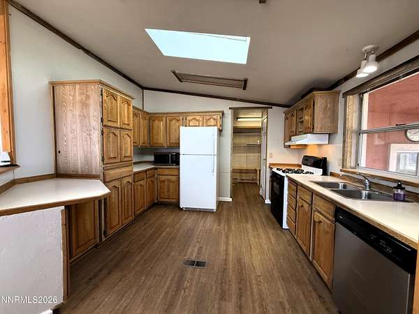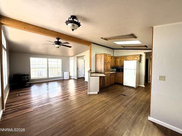 Set against the sweeping backdrop of the high desert, this 5-acre property blends rustic charm with modern comfort. At its heart stands a beautifully stuccoed manufactured home, offering 2 spacious bedrooms, 2 full baths, and a versatile office perfect for remote work or creative pursuits. A thoughtfully designed mudroom welcomes you in from the outdoors, leading into a great room where expansive windows wash the space with natural light, framing views of beautiful blue skies and the mature trees on the property. Step outside to enjoy both a covered deck and a shaded patio-ideal for morning coffee, evening gatherings, or simply soaking in the serene desert air. For horse lovers or those seeking space for hobbies, the property features a fabulous barn with a loft and an arena, ready for your riding pleasure. Call today to schedule your private showing. New property photos 4-6-26