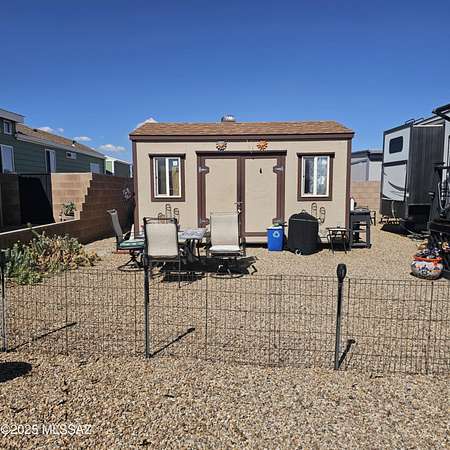 Est $481/moArizona Legends, a welcoming 55+ community, offers outstanding amenities including a clubhouse, fitness center, library, laundry facilities, pool, and spa. With water, sewer, and trash included in the low $85/month HOA fee, it's an affordable and hassle-free lifestyle. This lot includes some outdoor furniture and a 16'x20' shed with power and water a Washer and Dryer with room to store all of your things.