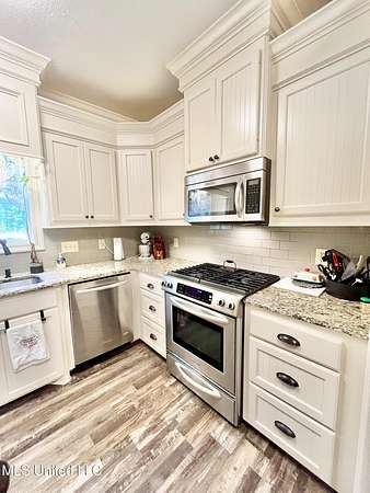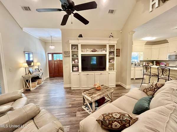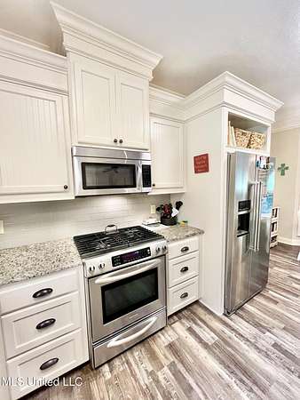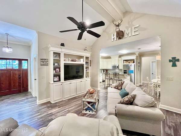 This 3-bedroom, 2-bath home, built in 2016, is nestled on 21.3+/- acres and offers the perfect blend of comfort, functionality, privacy, and Southern charm. The open layout and split floor plan create a spacious feel throughout. Just inside the front door, you're welcomed by a foyer and private office-ideal for working from home. The living room features vaulted ceilings, custom built-ins, and patio access, making it the true heart of the home. The primary suite includes a soaking tub, walk-in shower, double vanity, and large walk-in closet. The kitchen is designed for both style and function, offering stainless steel appliances (gas range, dishwasher, microwave, and refrigerator), granite countertops, an island with bar seating, abundant storage, and a picture-perfect view of the front yard from the sink-all open to the living and dining area. A spacious laundry room adds convenience with generous cabinets, counter space, and a hanging rail. Outdoor living is just as inviting, with a classic front porch, a large covered screened patio overlooking the backyard, fruit trees (pear, plum, fig, and apple), and a charming storage building. The property itself is a secluded oasis, complete with a creek, wooded acreage, abundant wildlife, and excellent hunting opportunities for deer and turkey. Additional features: - 2-car garage - Generac generator - Tankless water heater - Architectural shingle roof - Brick & stone accents - Beautiful landscaping - New flooring (under 2 years old) - Solar-powered iron gate with keypad entry All this just under 8 miles from I-55 on Hwy 27-peaceful country living with modern amenities! 19152 Hwy 27, Crystal Springs, MS